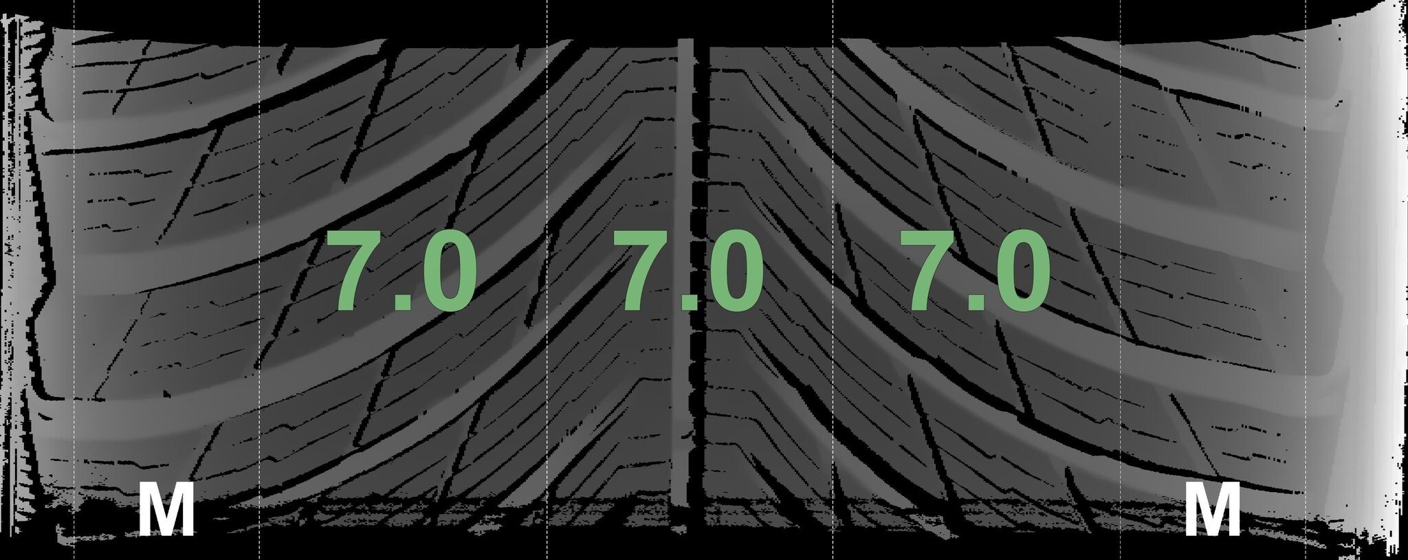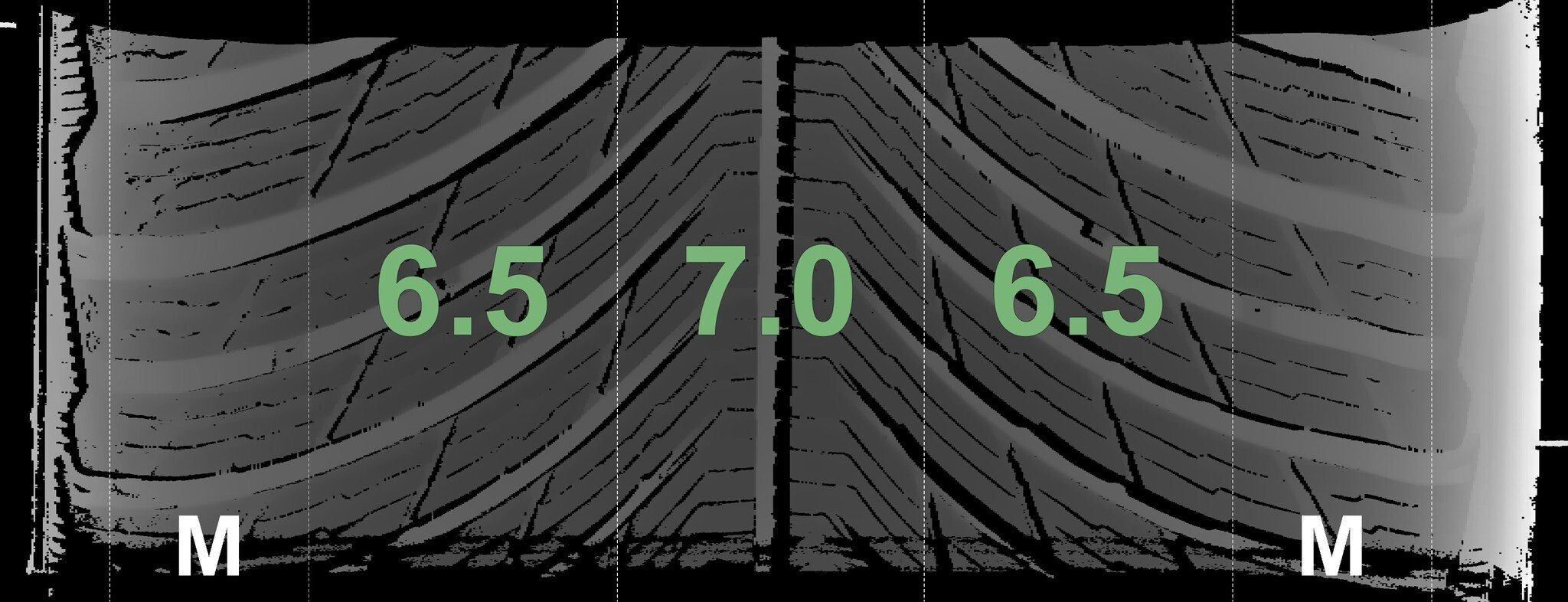 De gemeten profieldieptes en de details van de velgen zijn hierboven weergegeven.