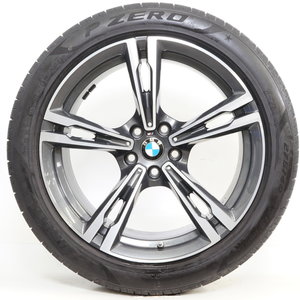 Jong gebruikte set originele BMW M5 M8 styling 705 M velgen 19 inch met Pirelli P Zero Zomerbanden. Deze velgen zijn originele velgen van het merk BMW en geschikt voor de BMW M5 F90. Twee van de velgen verkeren in nieuwstaat en twee van de velgen vertonen gebruikerssporen.