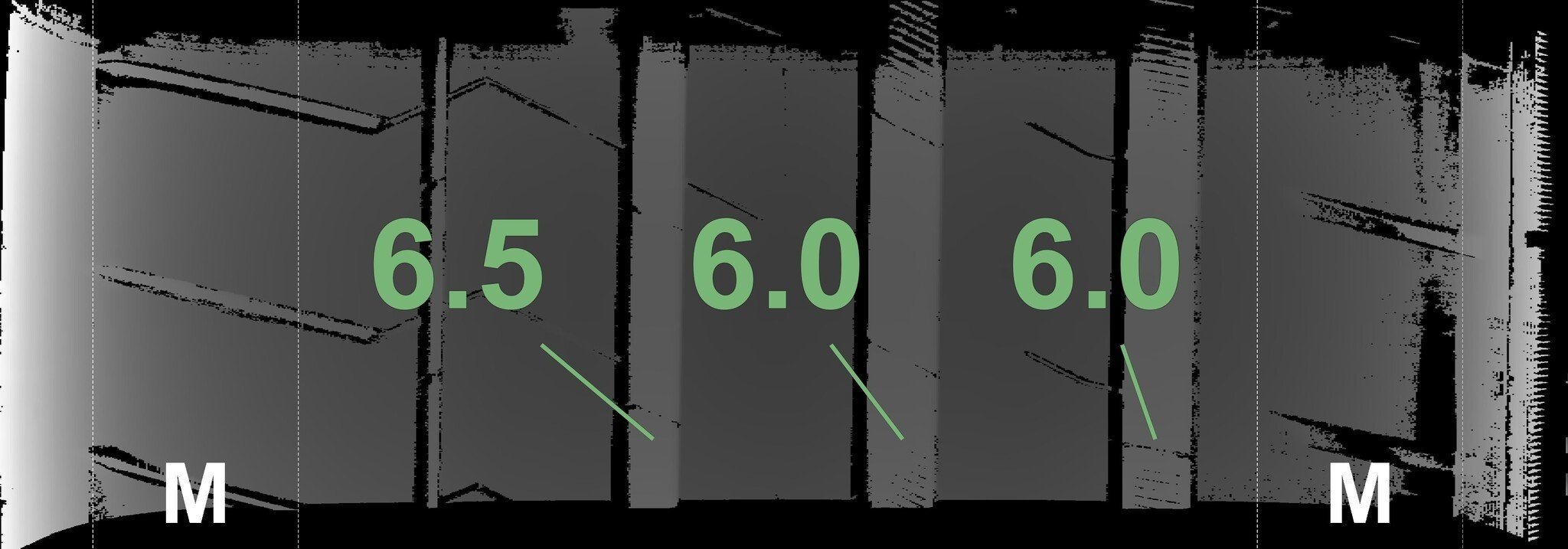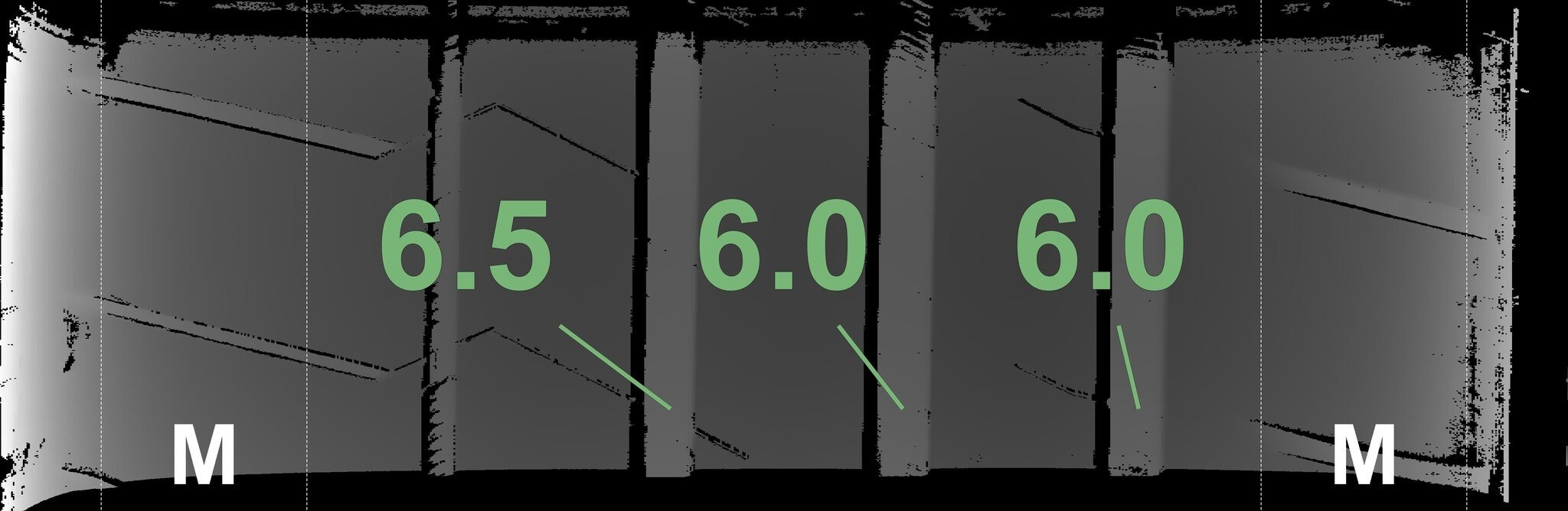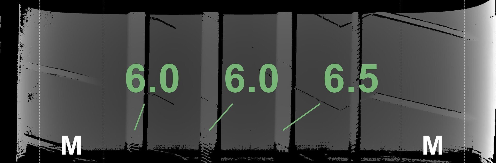 De gemeten profieldieptes en de details van de velgen zijn hierboven weergegeven.