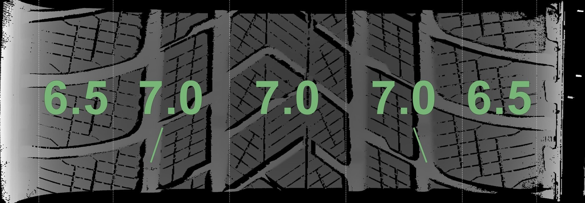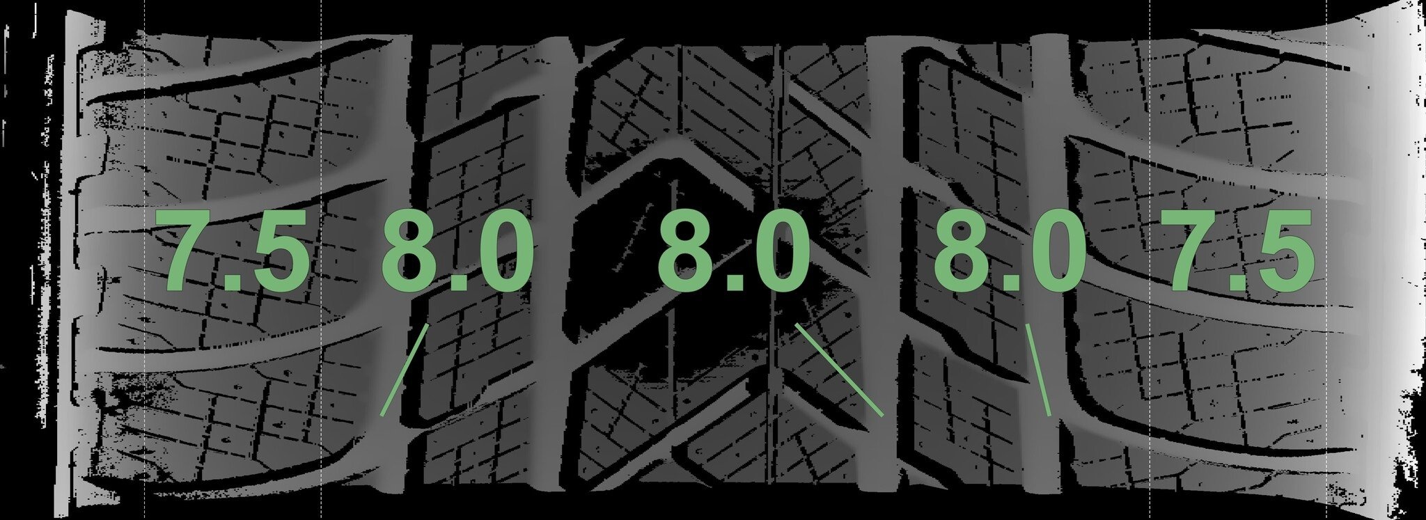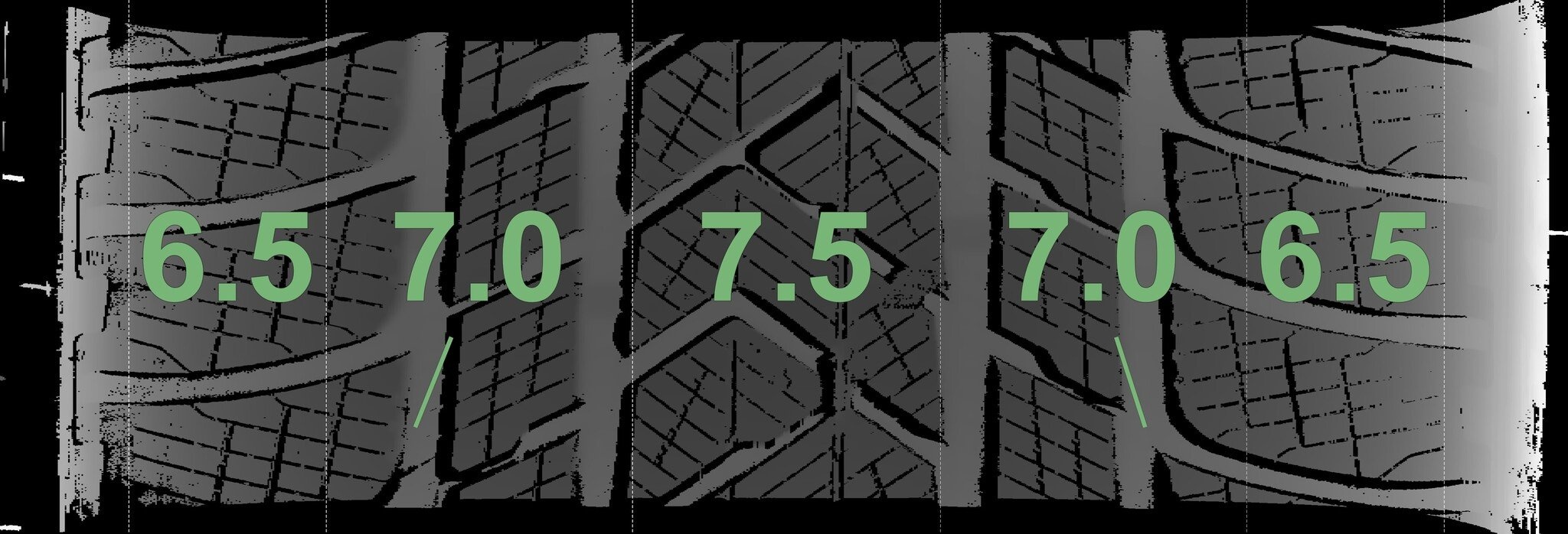De gemeten profieldieptes en de details van de velgen zijn hierboven weergegeven.