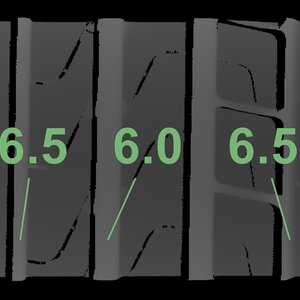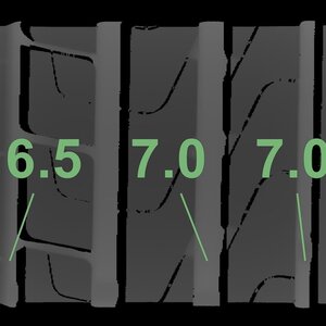 De gemeten profieldieptes en de details van de velgen zijn hierboven weergegeven.