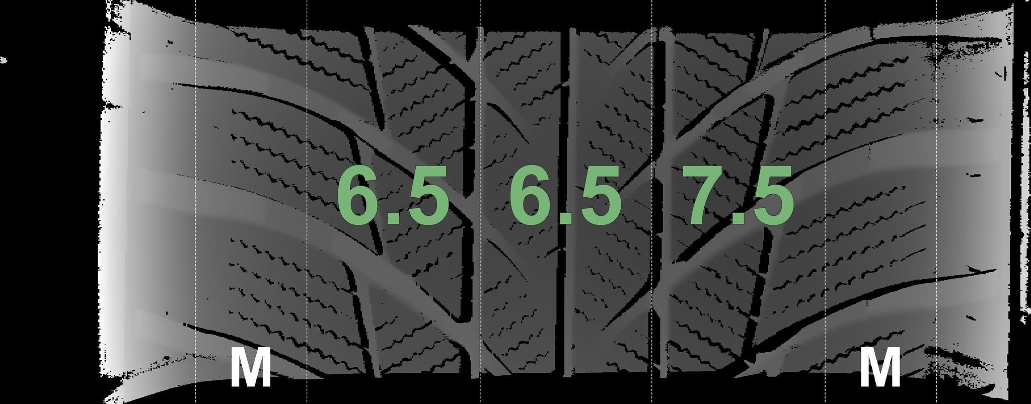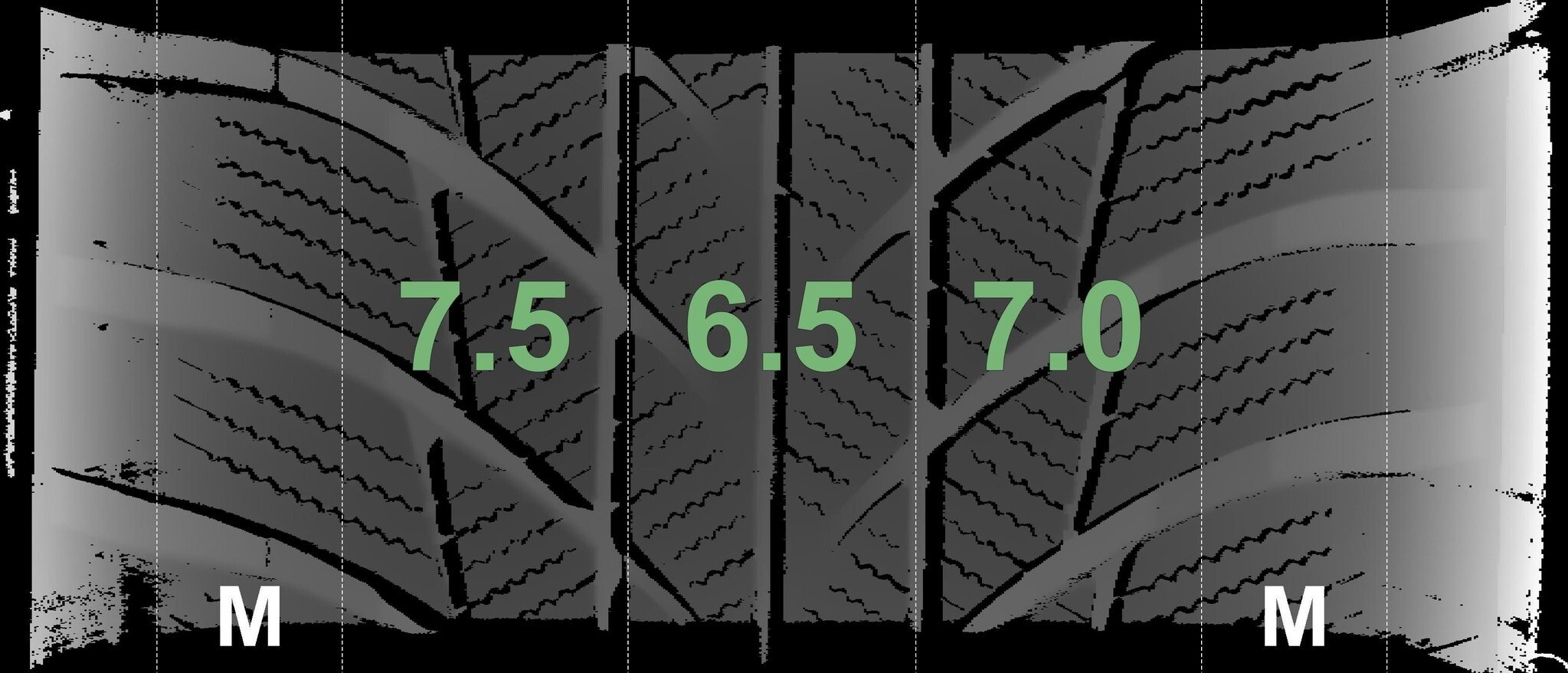 De gemeten profieldieptes en de details van de velgen zijn hierboven weergegeven.