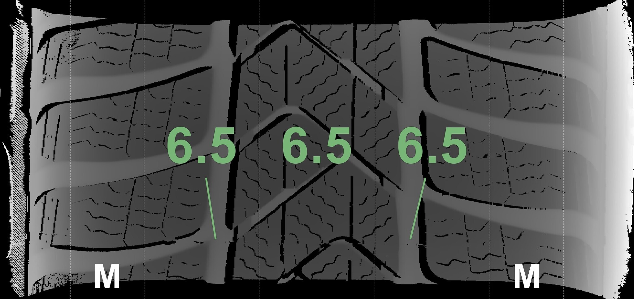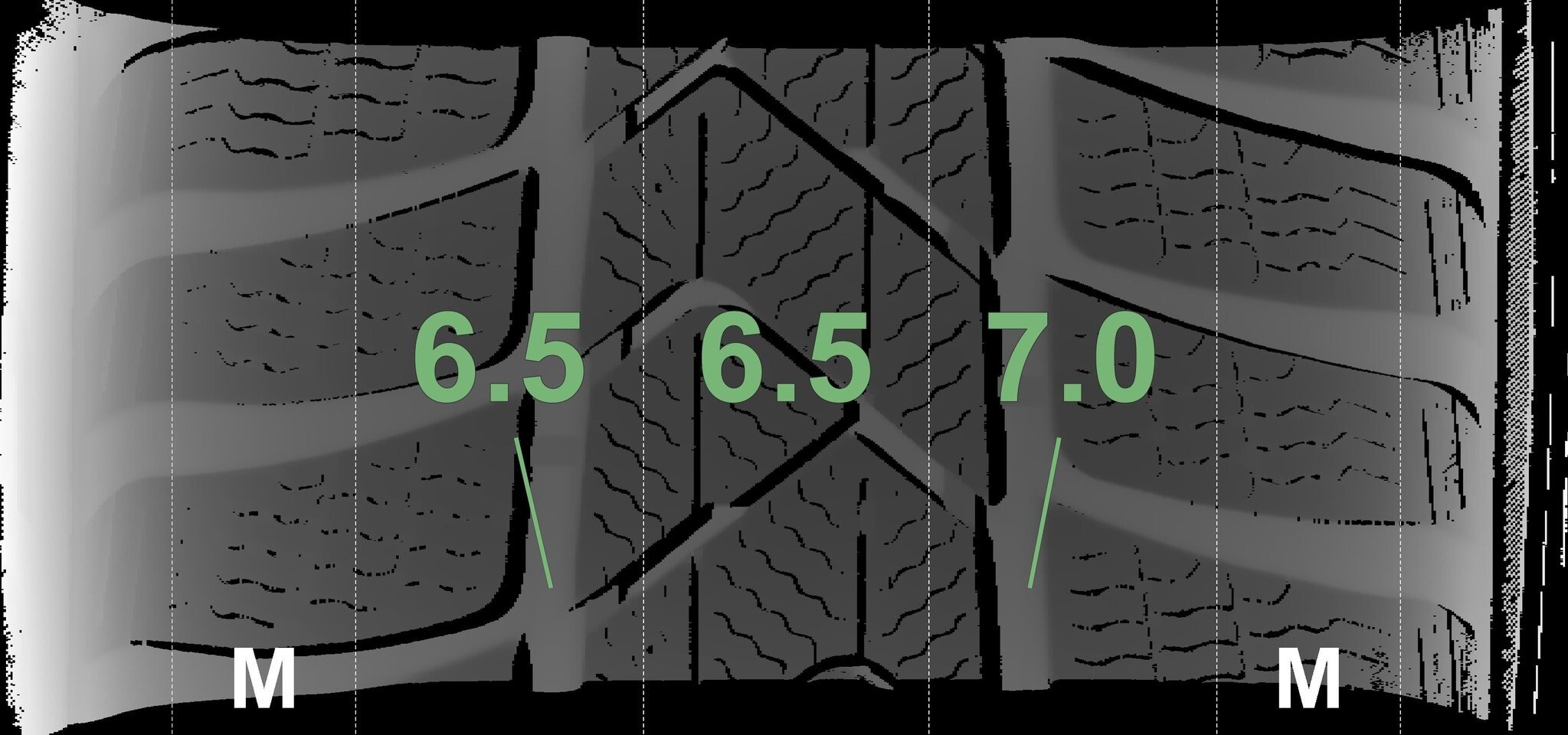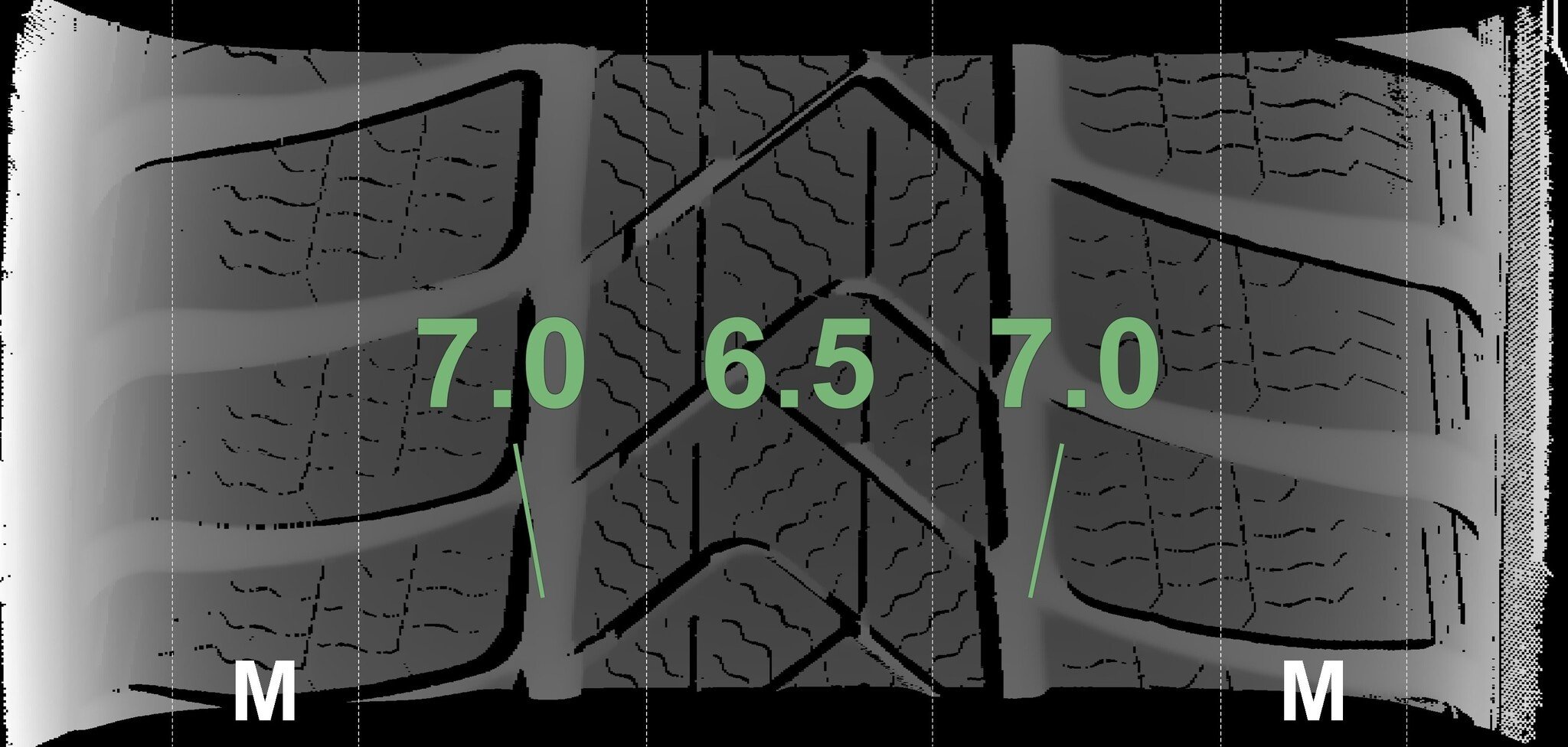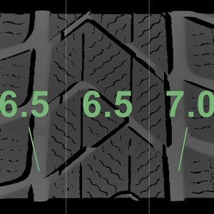 De gemeten profieldieptes en de details van de velgen zijn hierboven weergegeven.