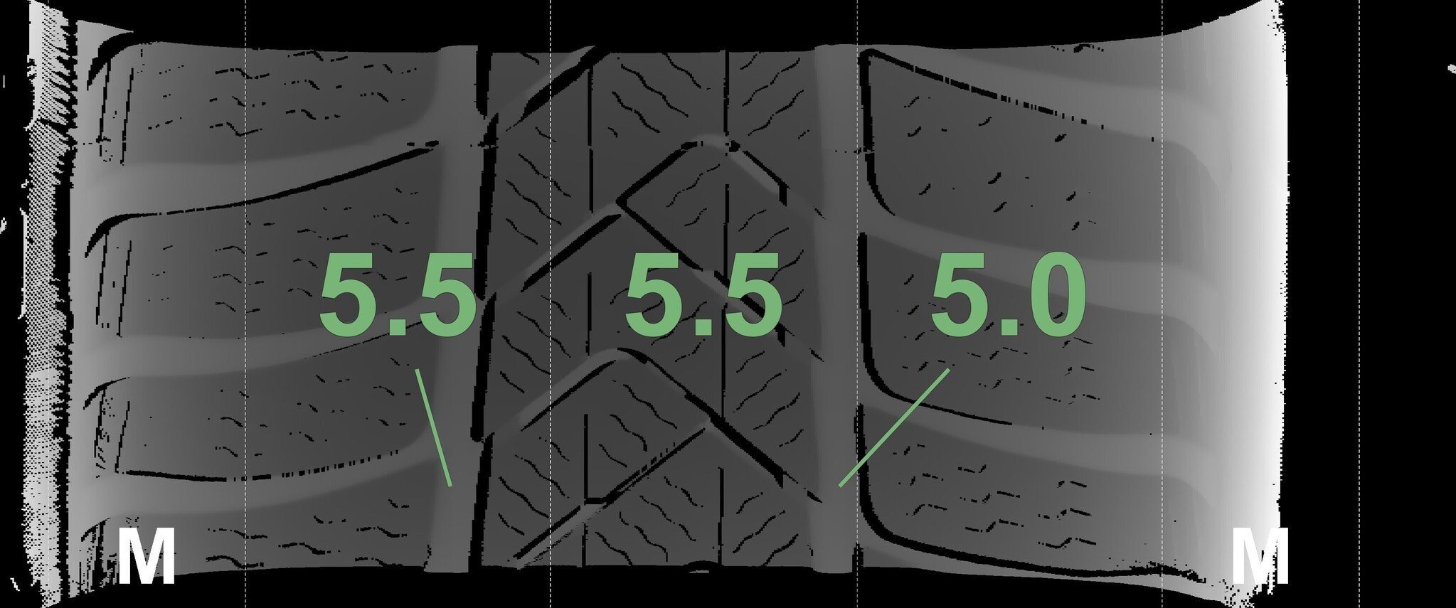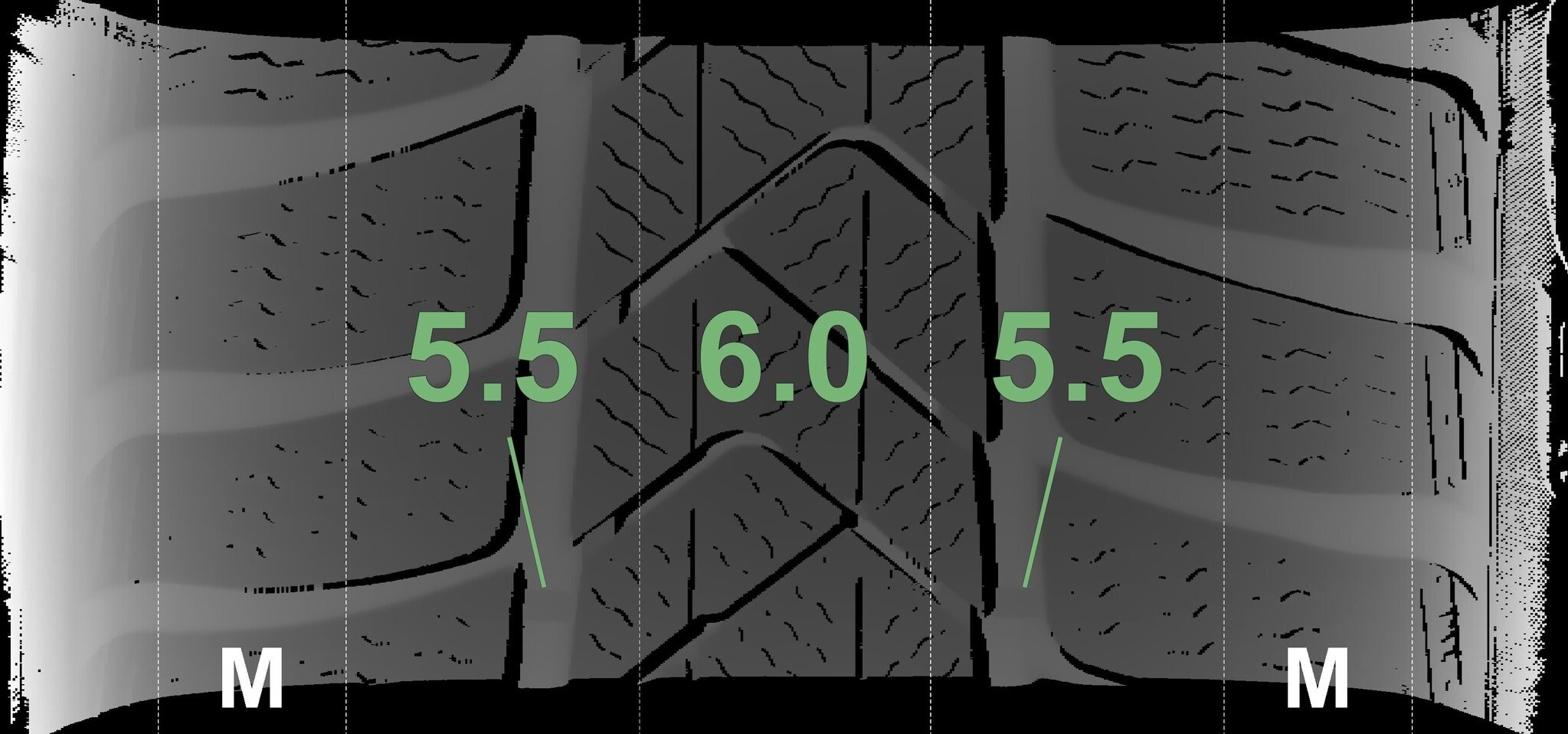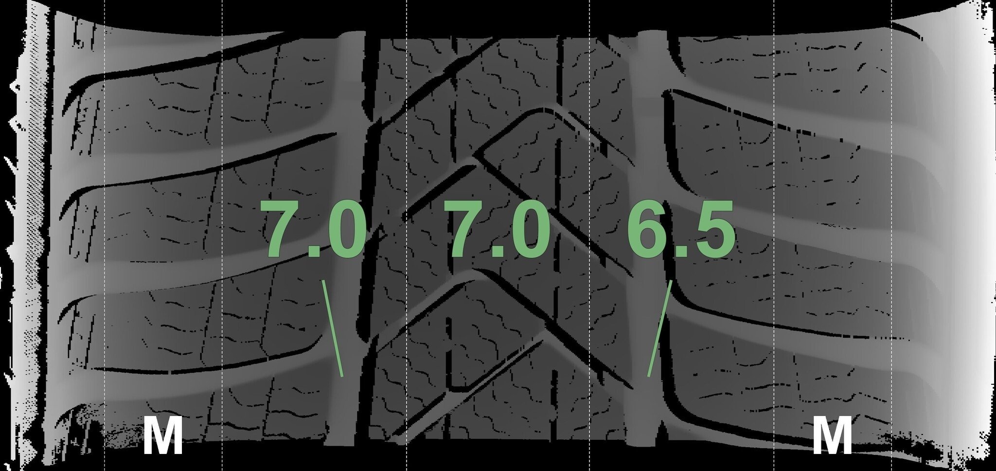 De gemeten profieldieptes en de details van de velgen zijn hierboven weergegeven.