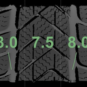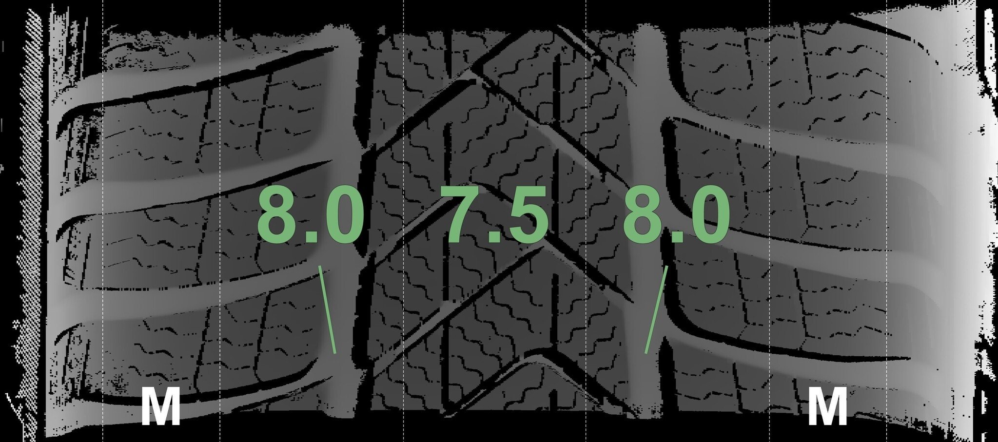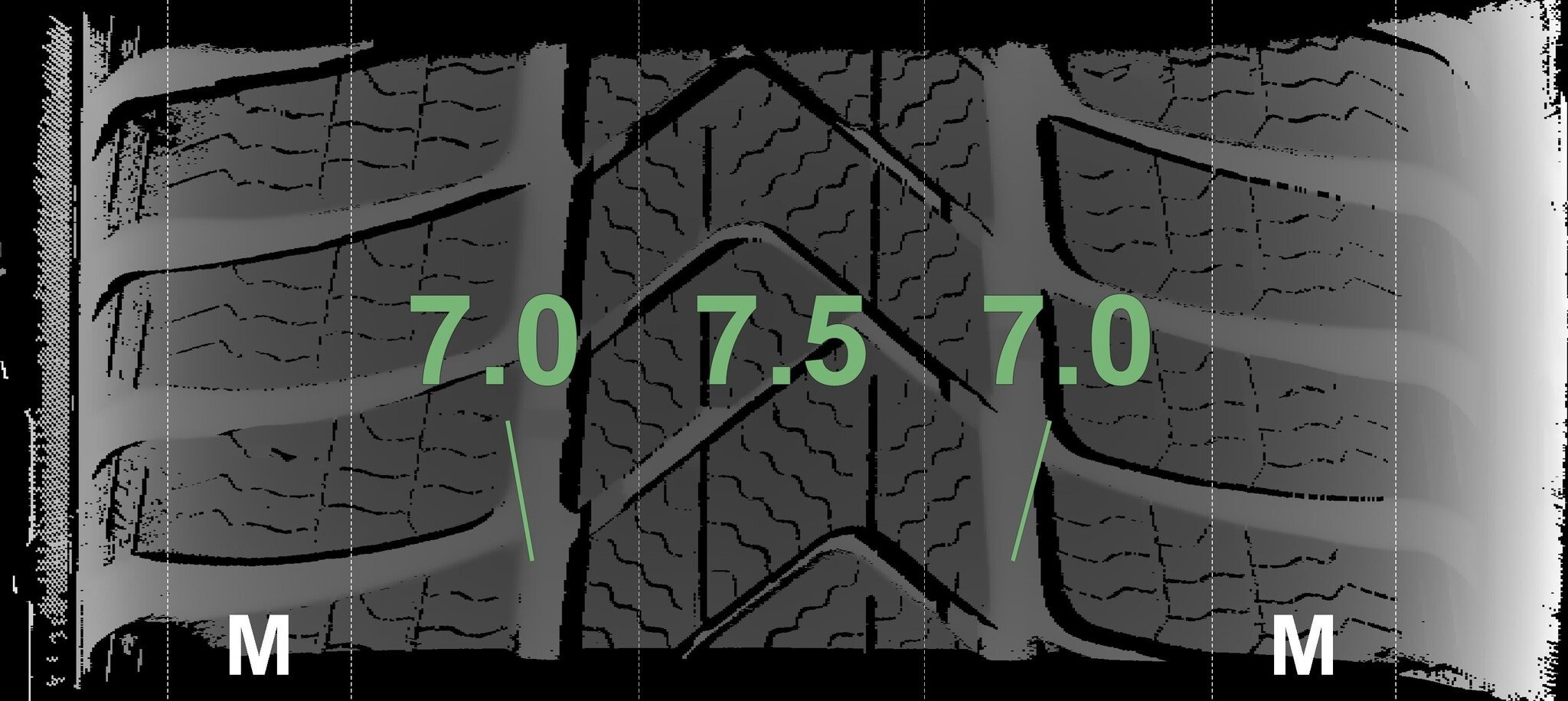 De gemeten profieldieptes en de details van de velgen zijn hierboven weergegeven.