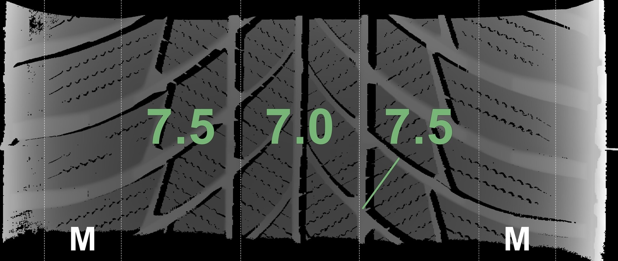 De gemeten profieldieptes en de details van de velgen zijn hierboven weergegeven.