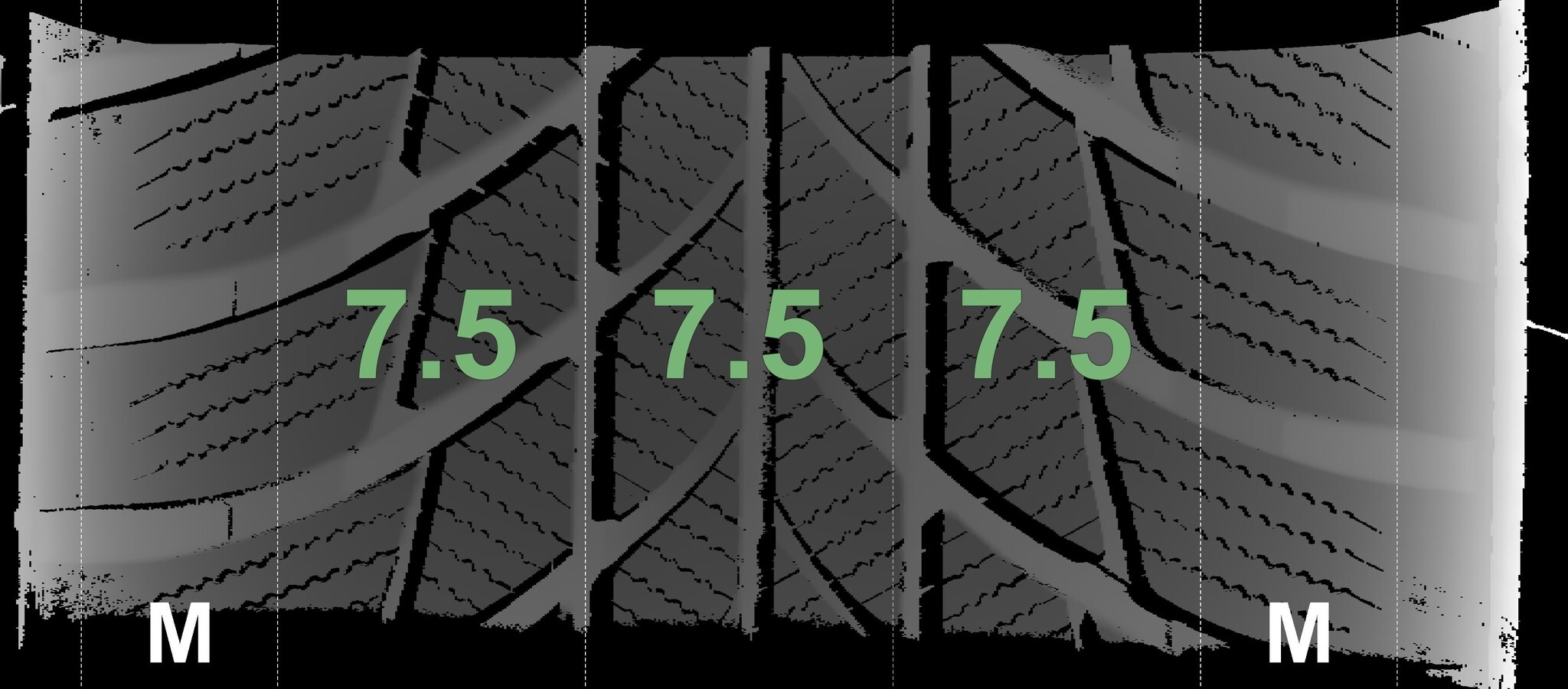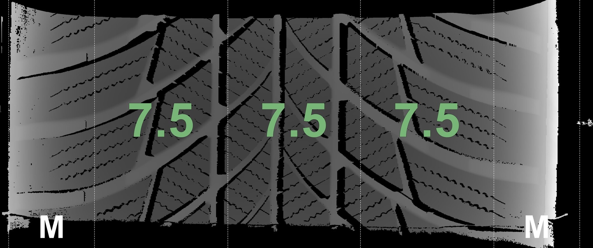 De gemeten profieldieptes en de details van de velgen zijn hierboven weergegeven.