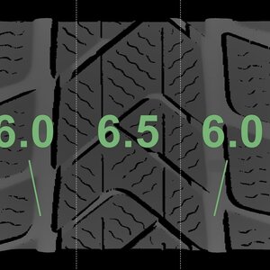 De gemeten profieldieptes en de details van de velgen zijn hierboven weergegeven.