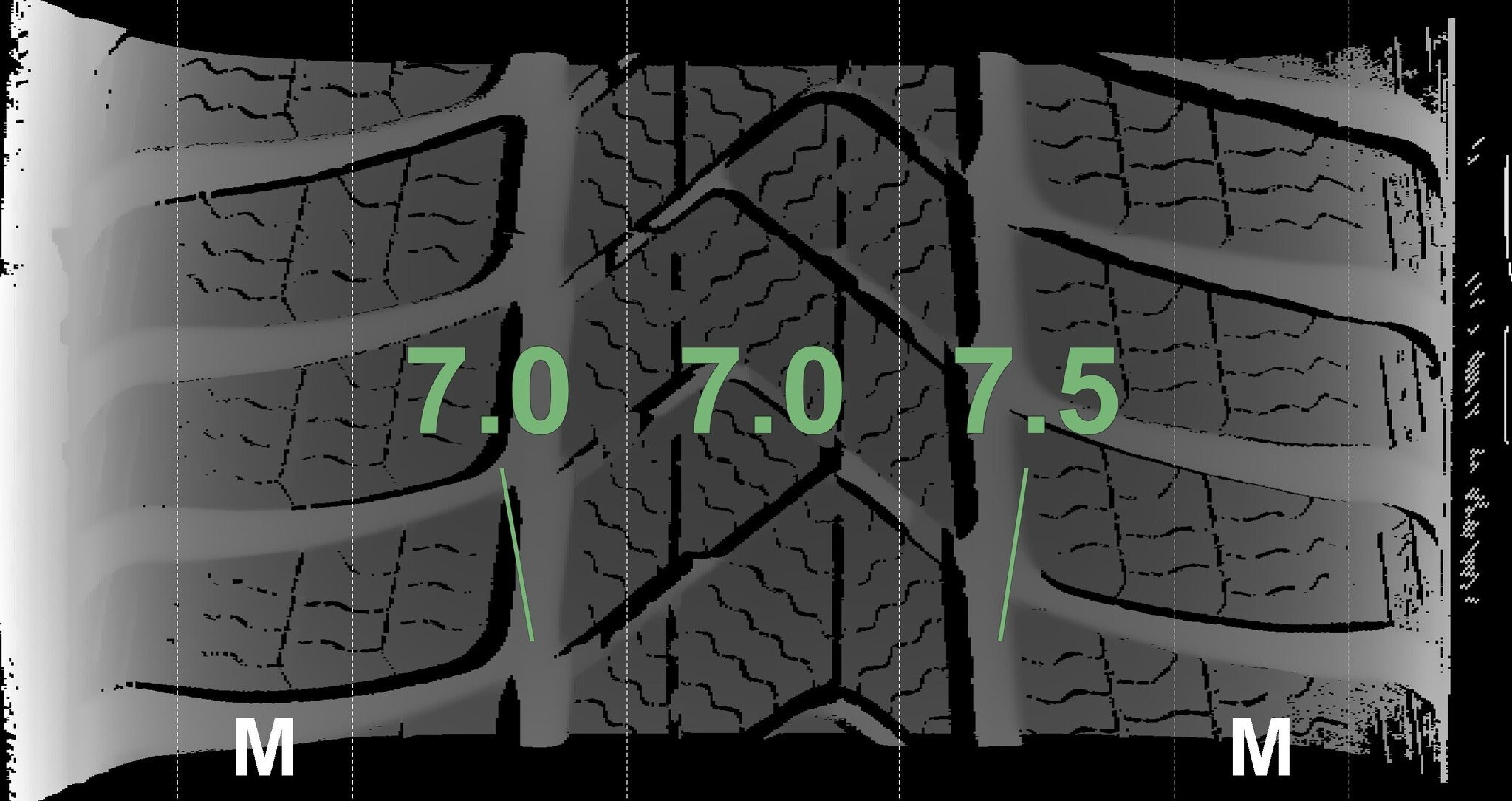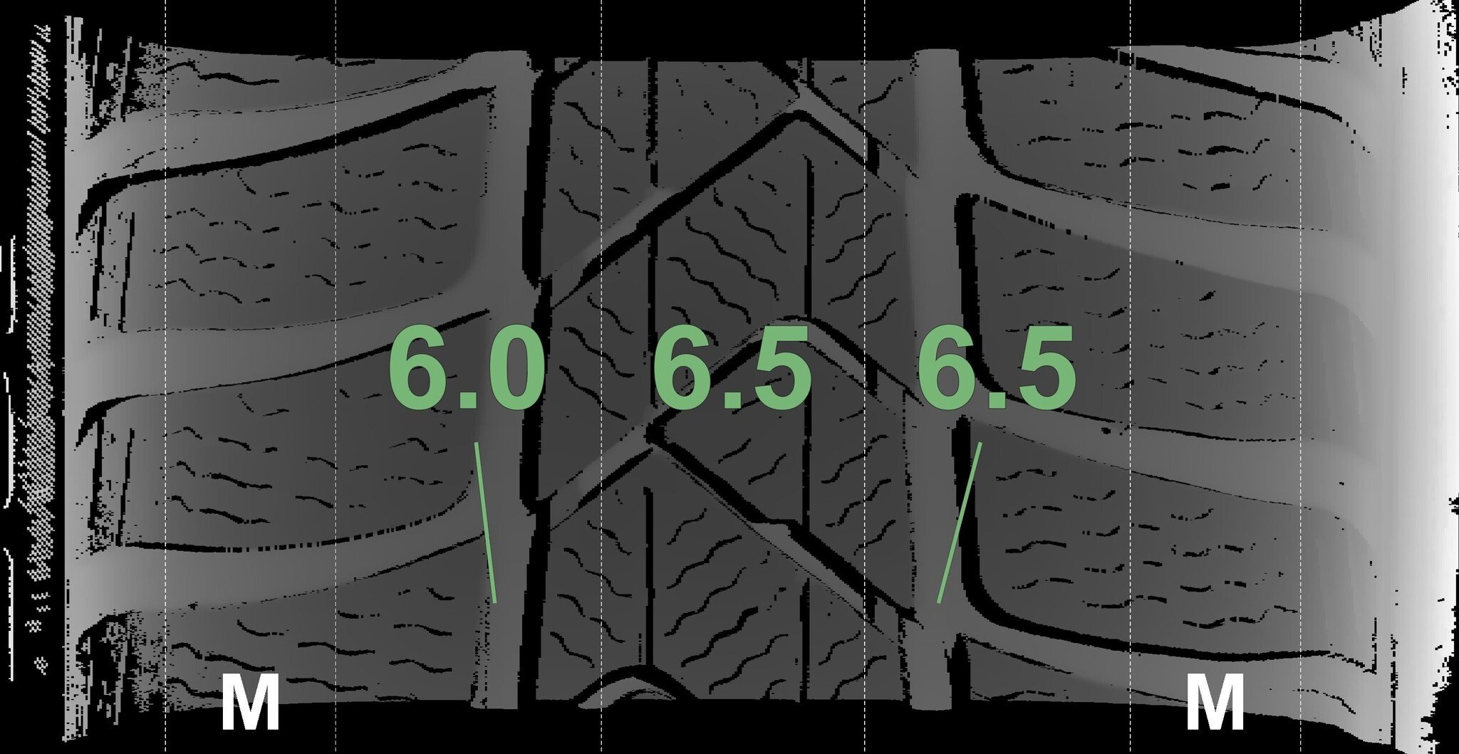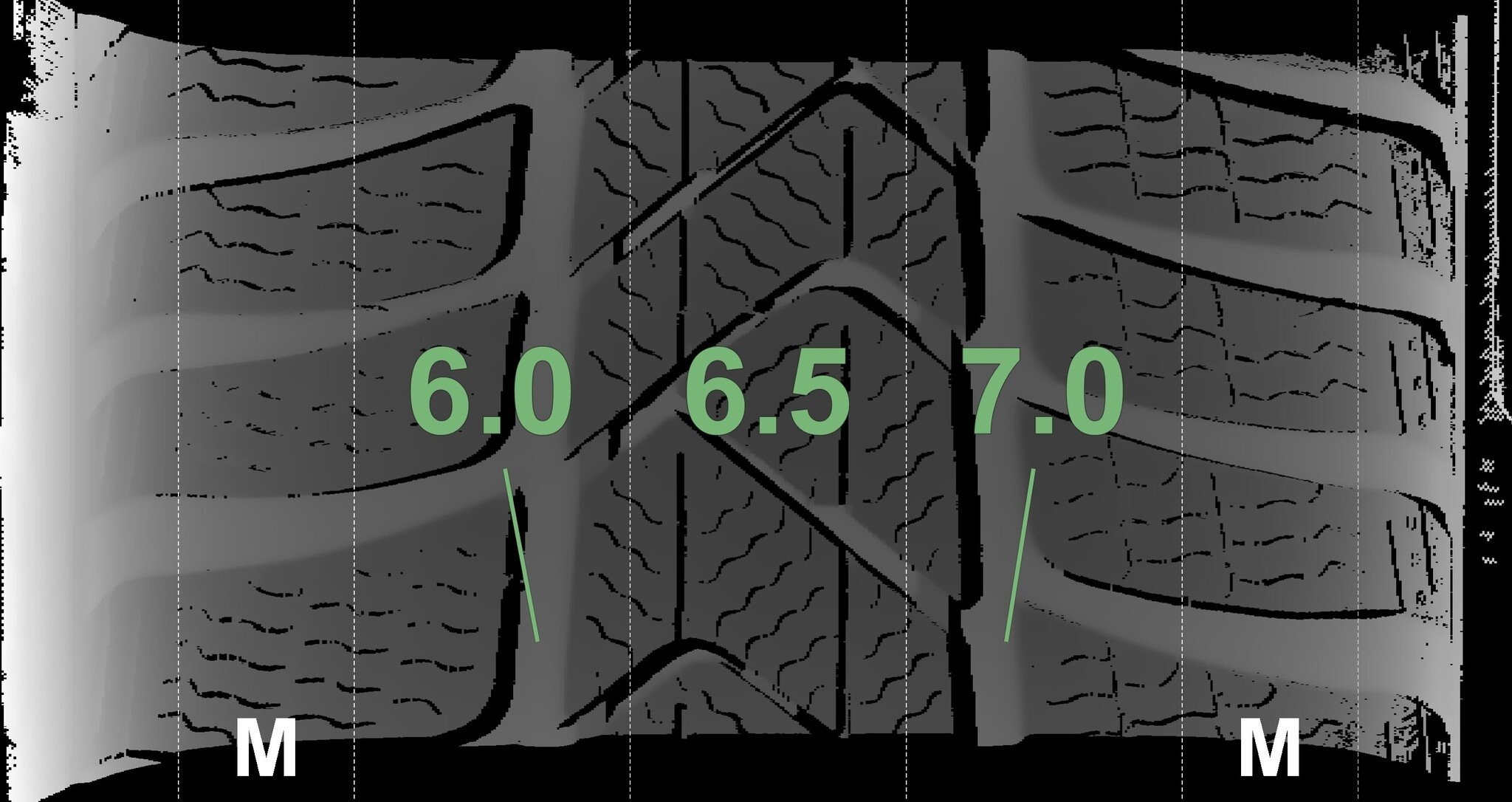 De gemeten profieldieptes en de details van de velgen zijn hierboven weergegeven.