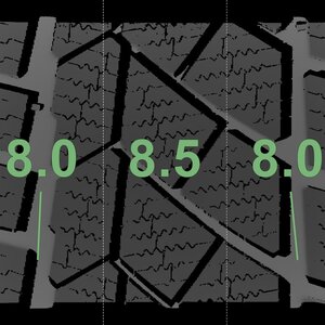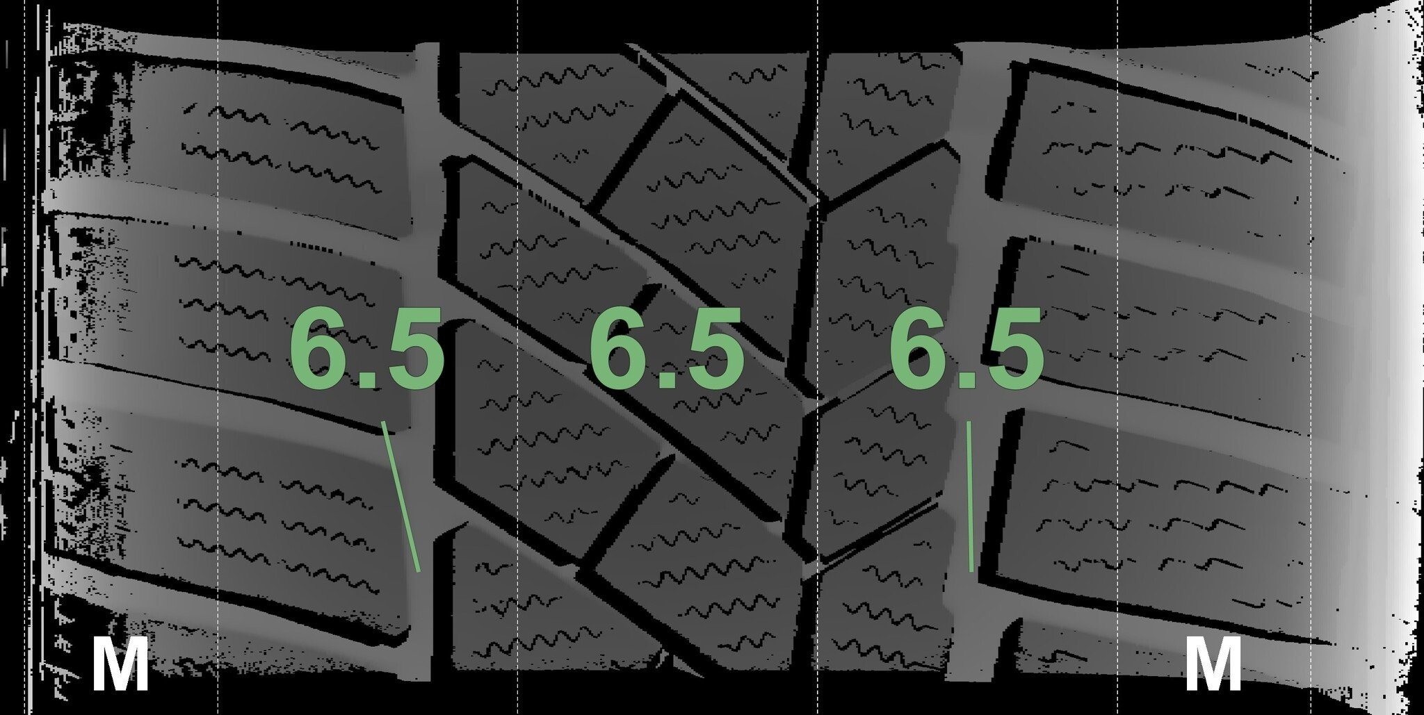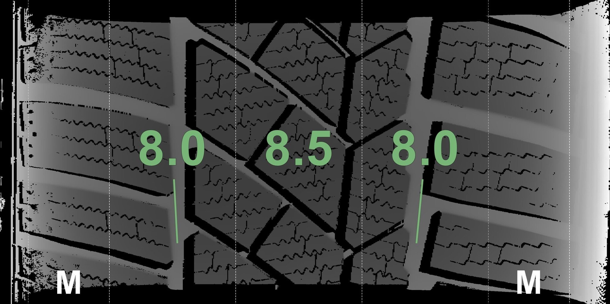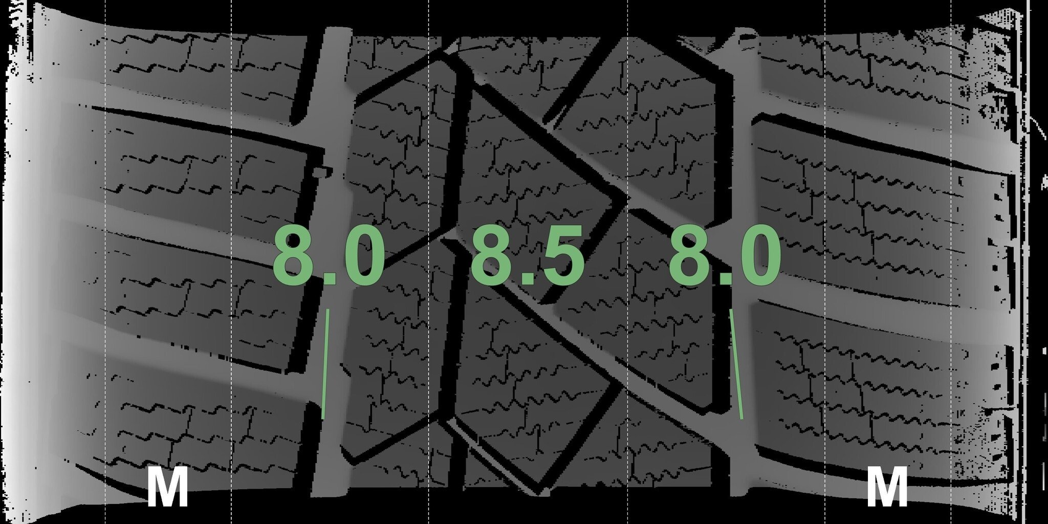 De gemeten profieldieptes en de details van de velgen zijn hierboven weergegeven.