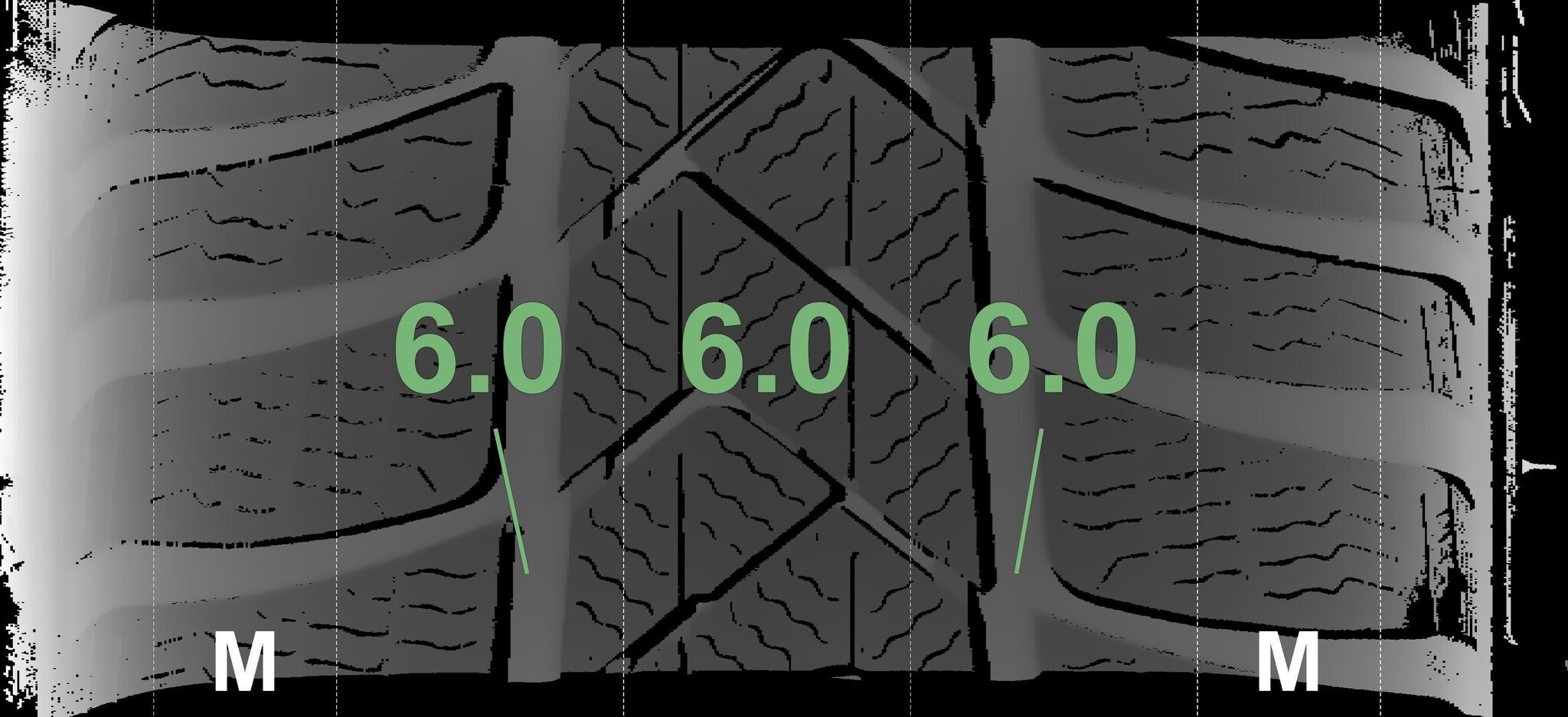 De gemeten profieldieptes en de details van de velgen zijn hierboven weergegeven.