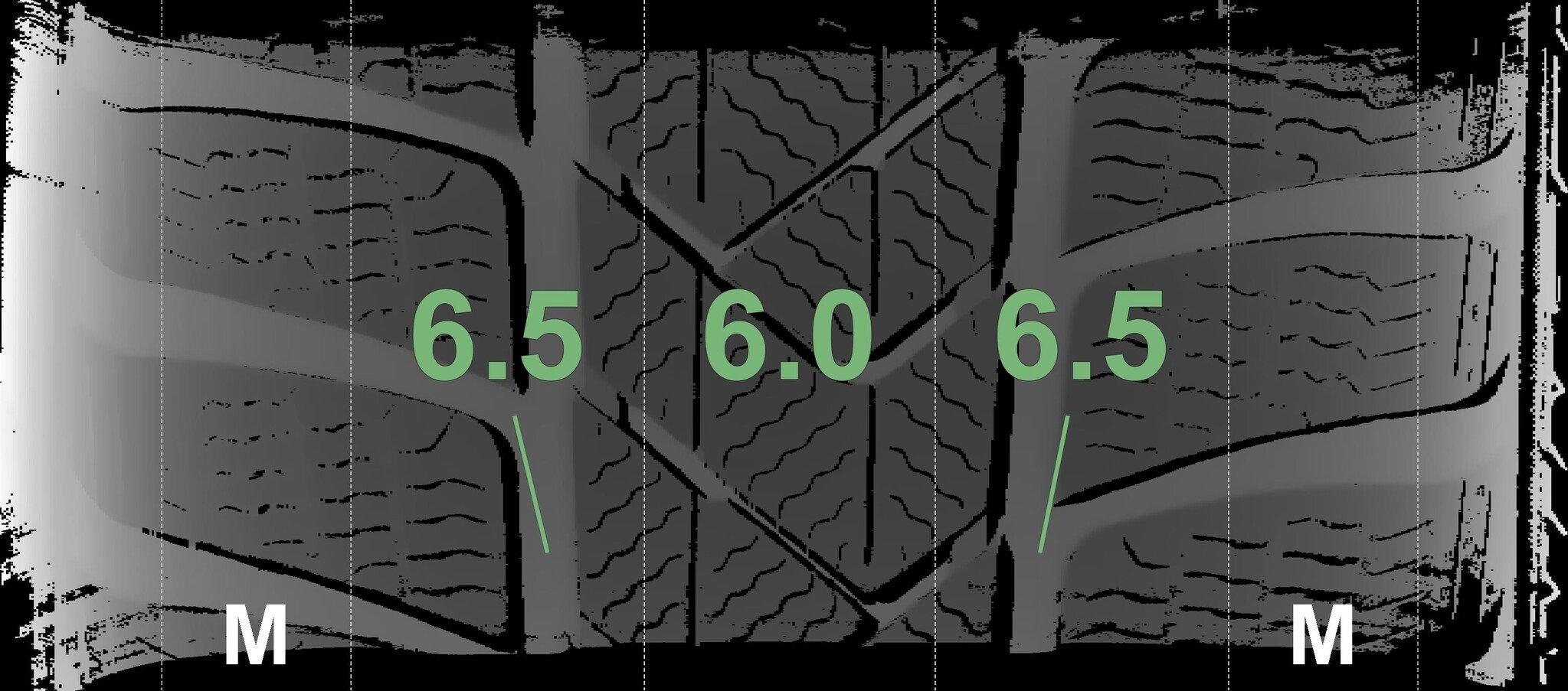 De gemeten profieldieptes en de details van de velgen zijn hierboven weergegeven.