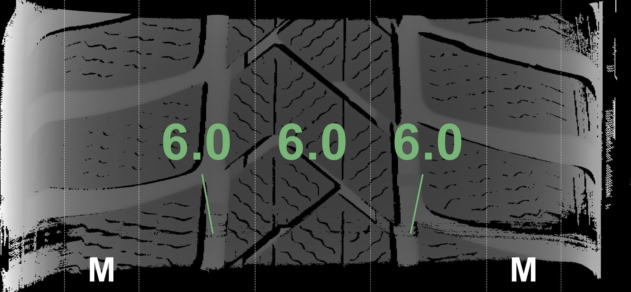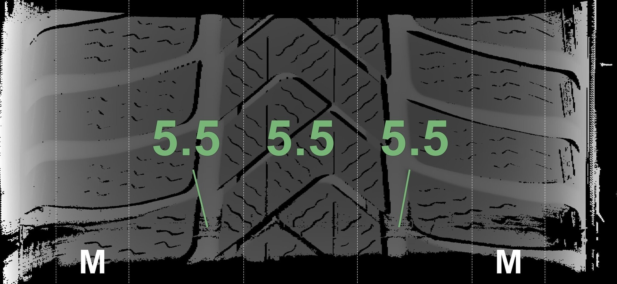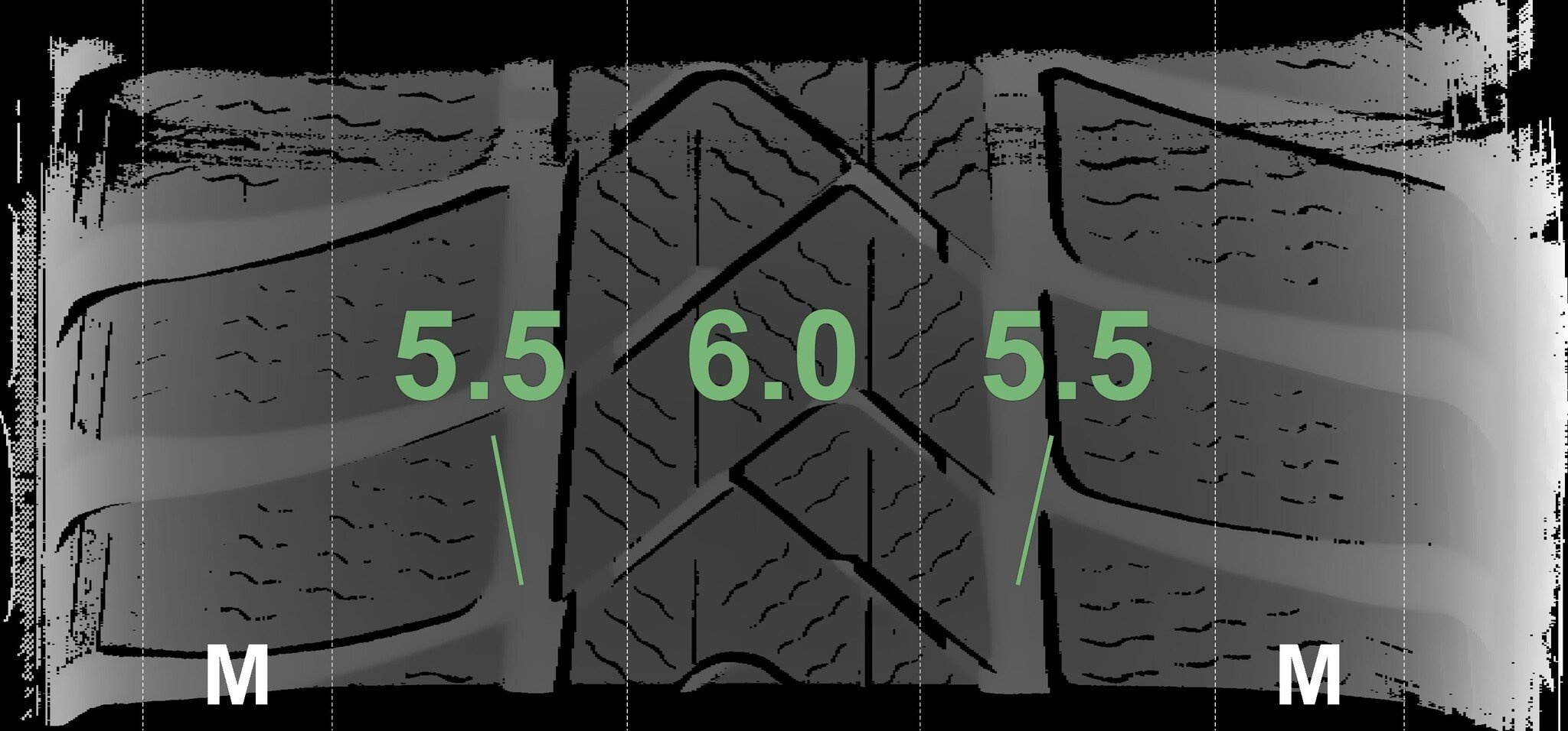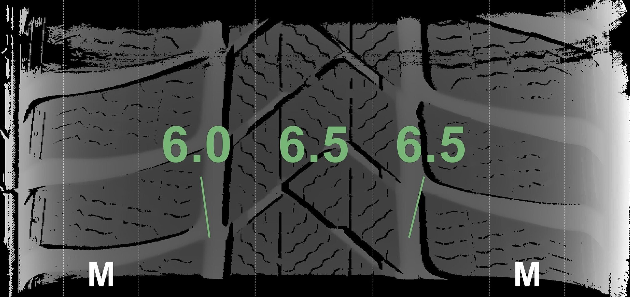 De gemeten profieldieptes en de details van de velgen zijn hierboven weergegeven.