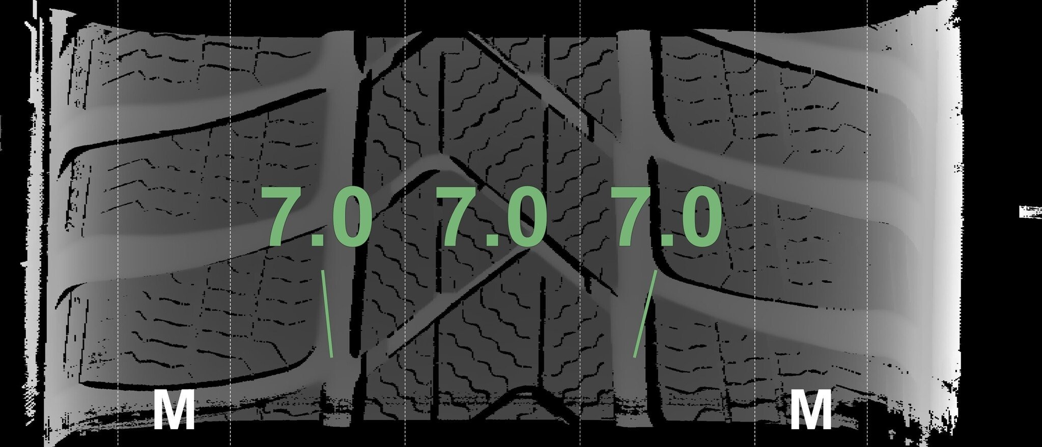 De gemeten profieldieptes en de details van de velgen zijn hierboven weergegeven.