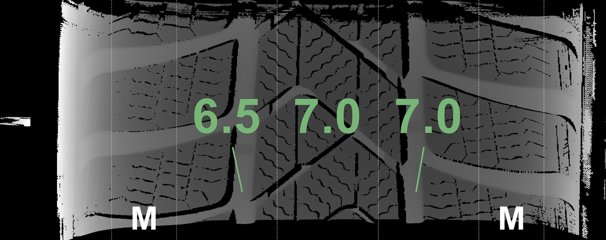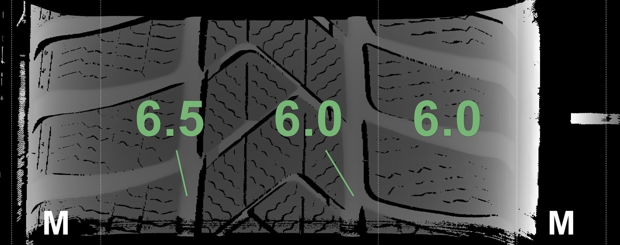 De gemeten profieldieptes en de details van de velgen zijn hierboven weergegeven.