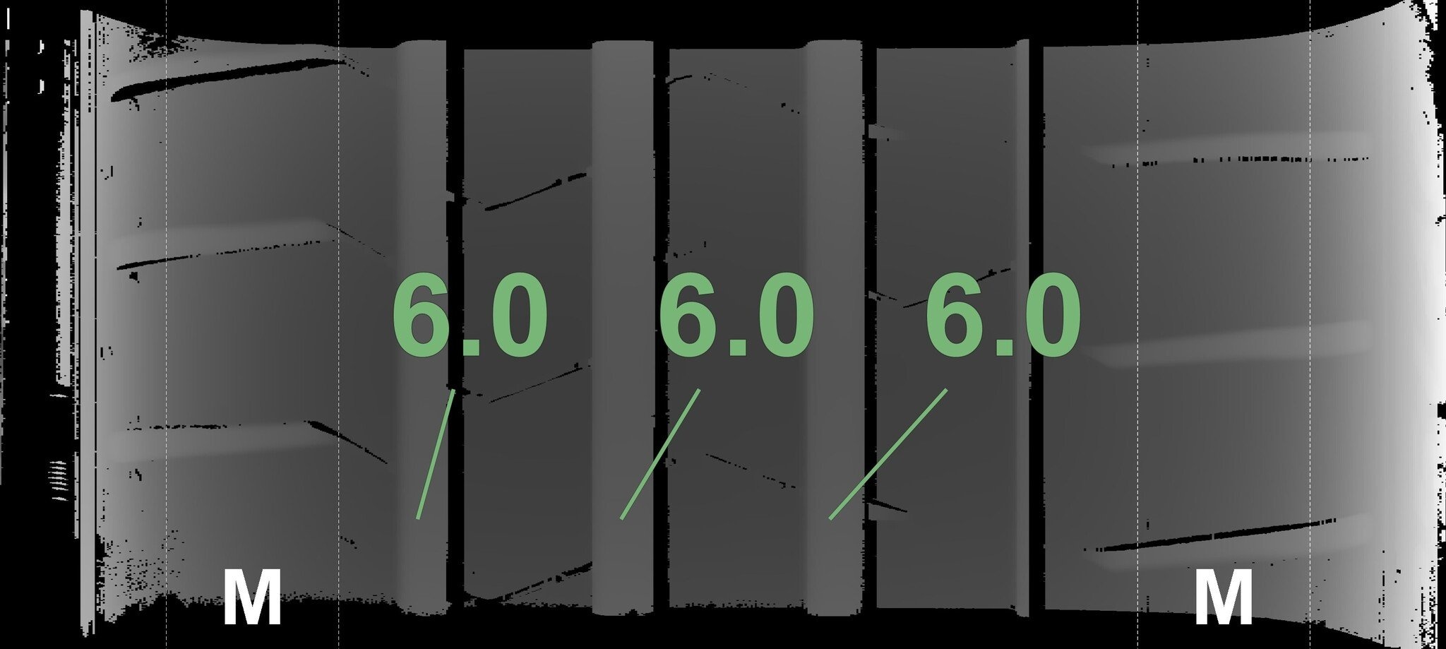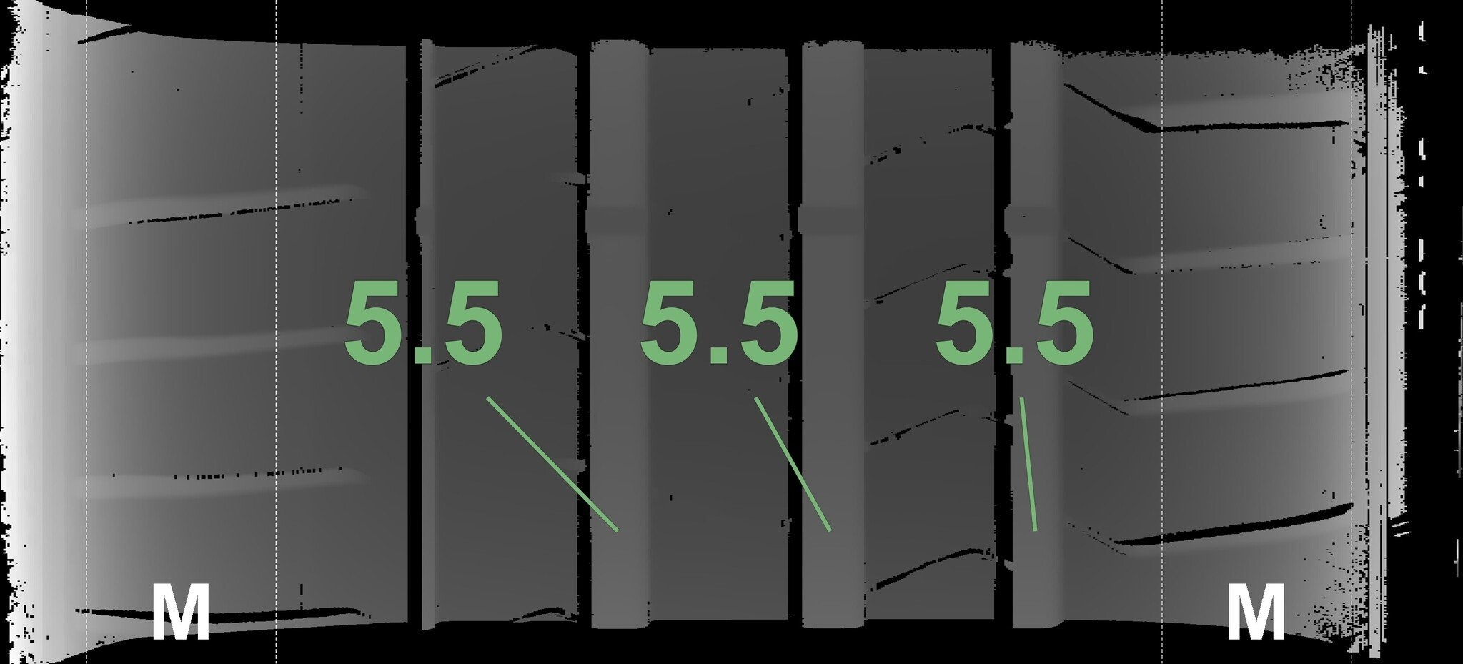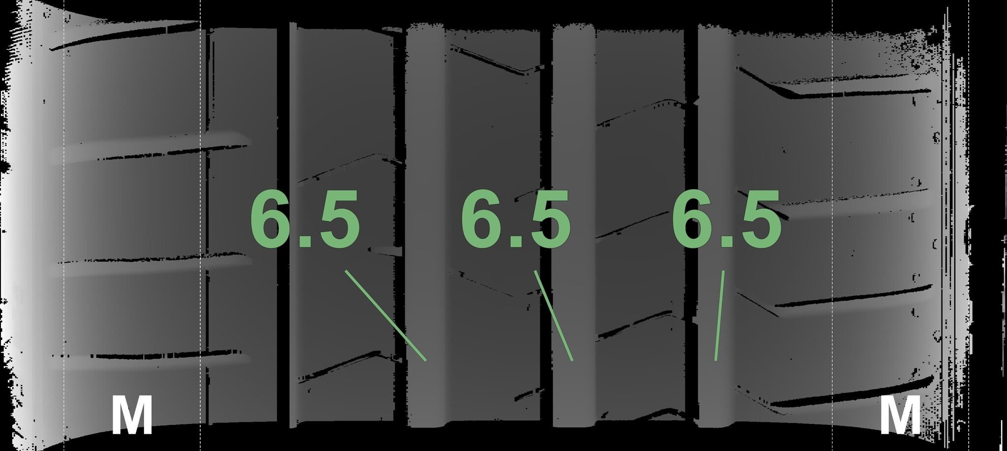 De gemeten profieldieptes en de details van de velgen zijn hierboven weergegeven.