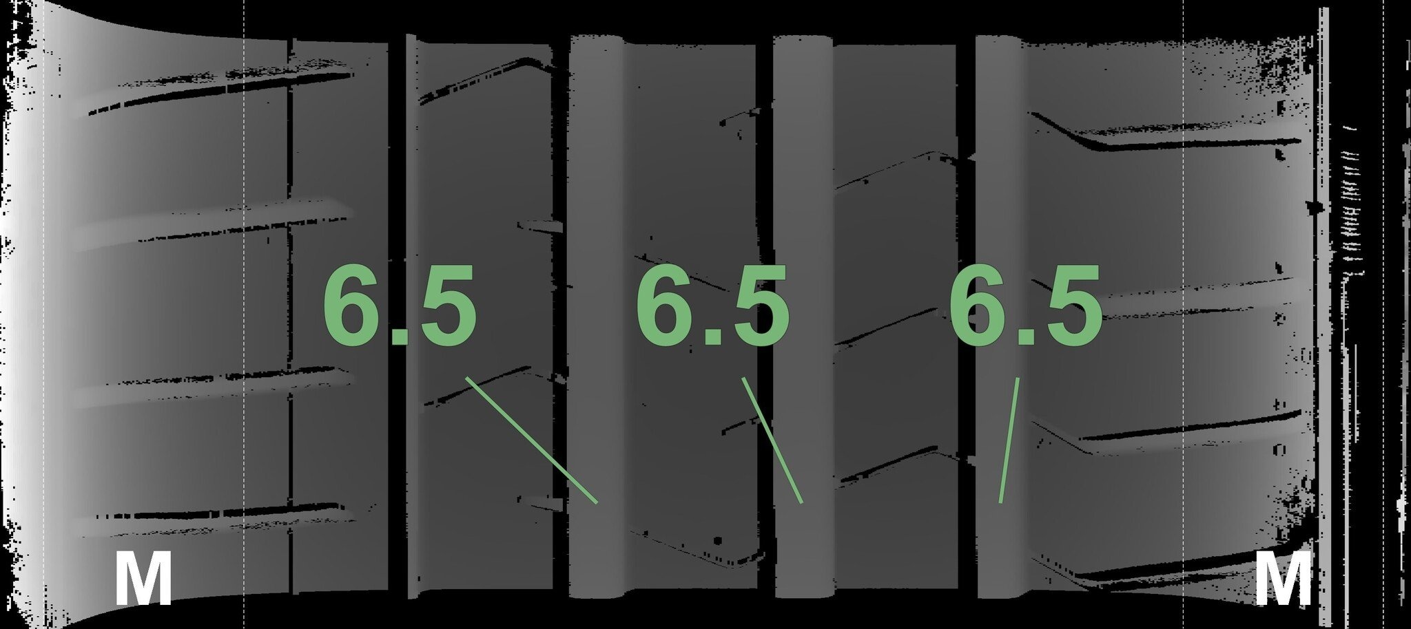 De gemeten profieldieptes en de details van de velgen zijn hierboven weergegeven.