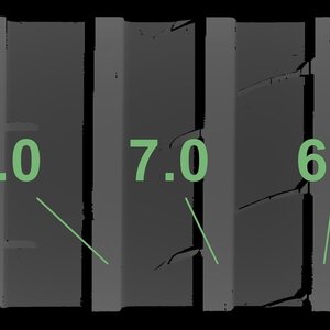 De gemeten profieldieptes en de details van de velgen zijn hierboven weergegeven.