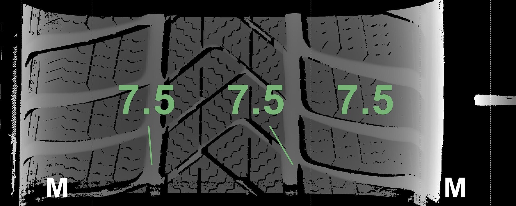 De gemeten profieldieptes en de details van de velgen zijn hierboven weergegeven.