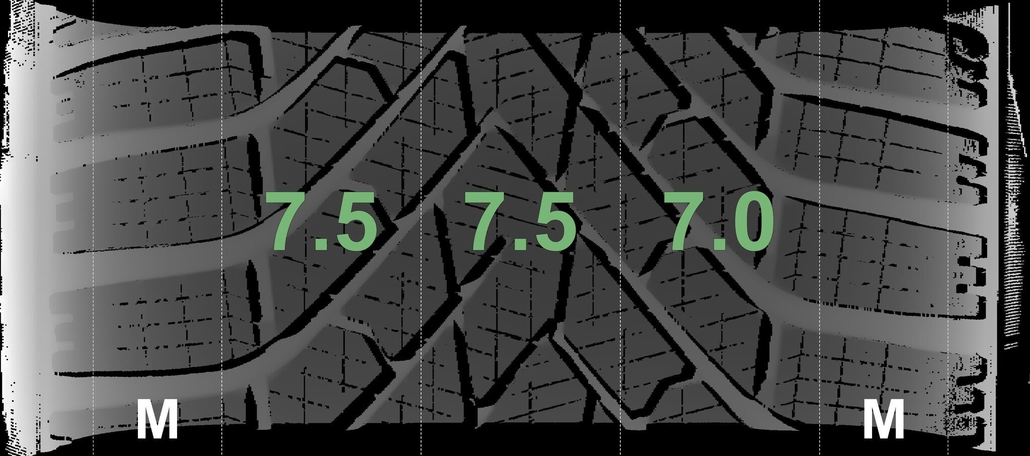 De gemeten profieldieptes en de details van de velgen zijn hierboven weergegeven.