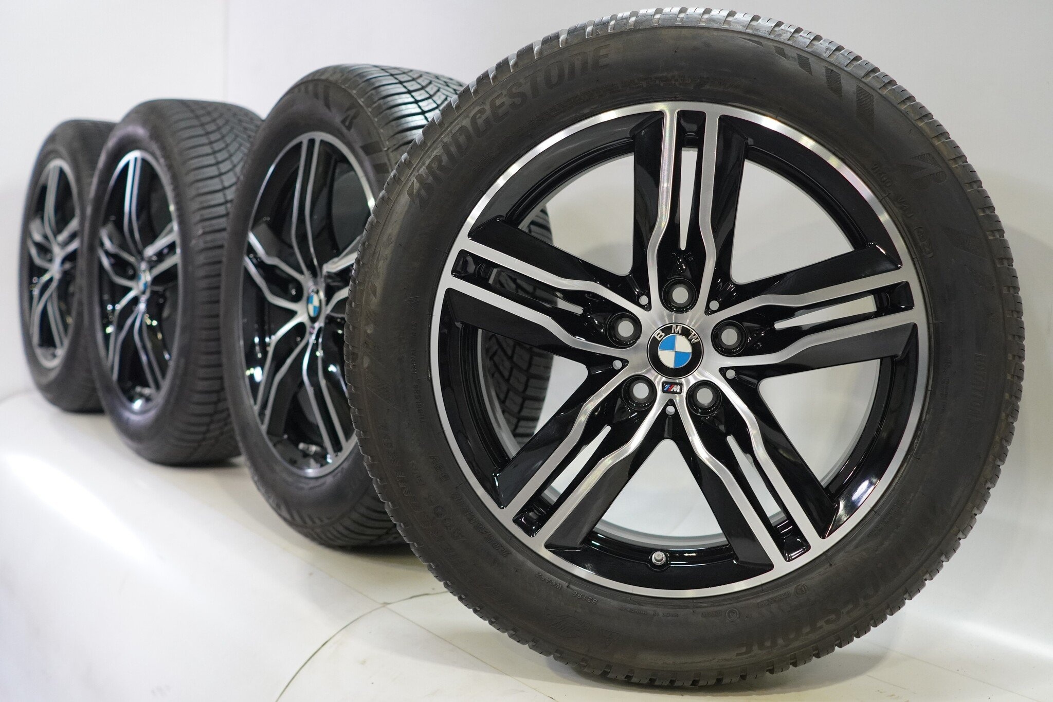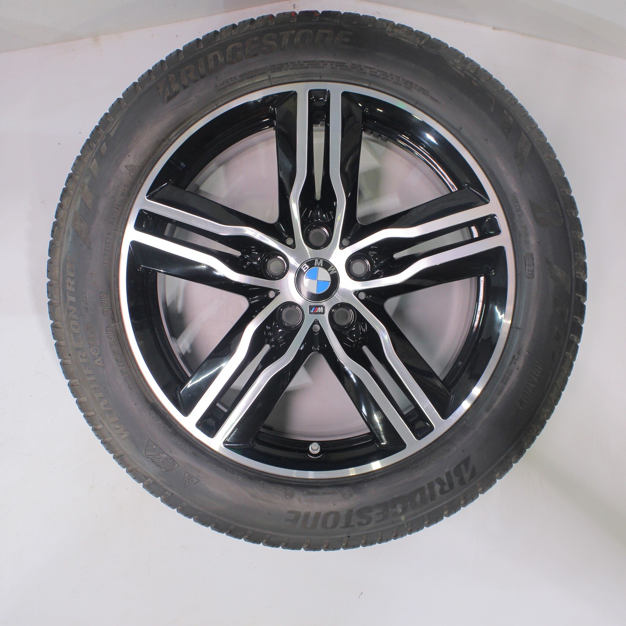 Originele wielset van BMW, styling 570M, 18 inch velgen met Bridgestone Weather Control A005 Evo Winterbanden. Deze velgen zijn originele velgen van het merk BMW en geschikt voor: BMW X1 iX1 U11 BEV X2 iX2 U10.