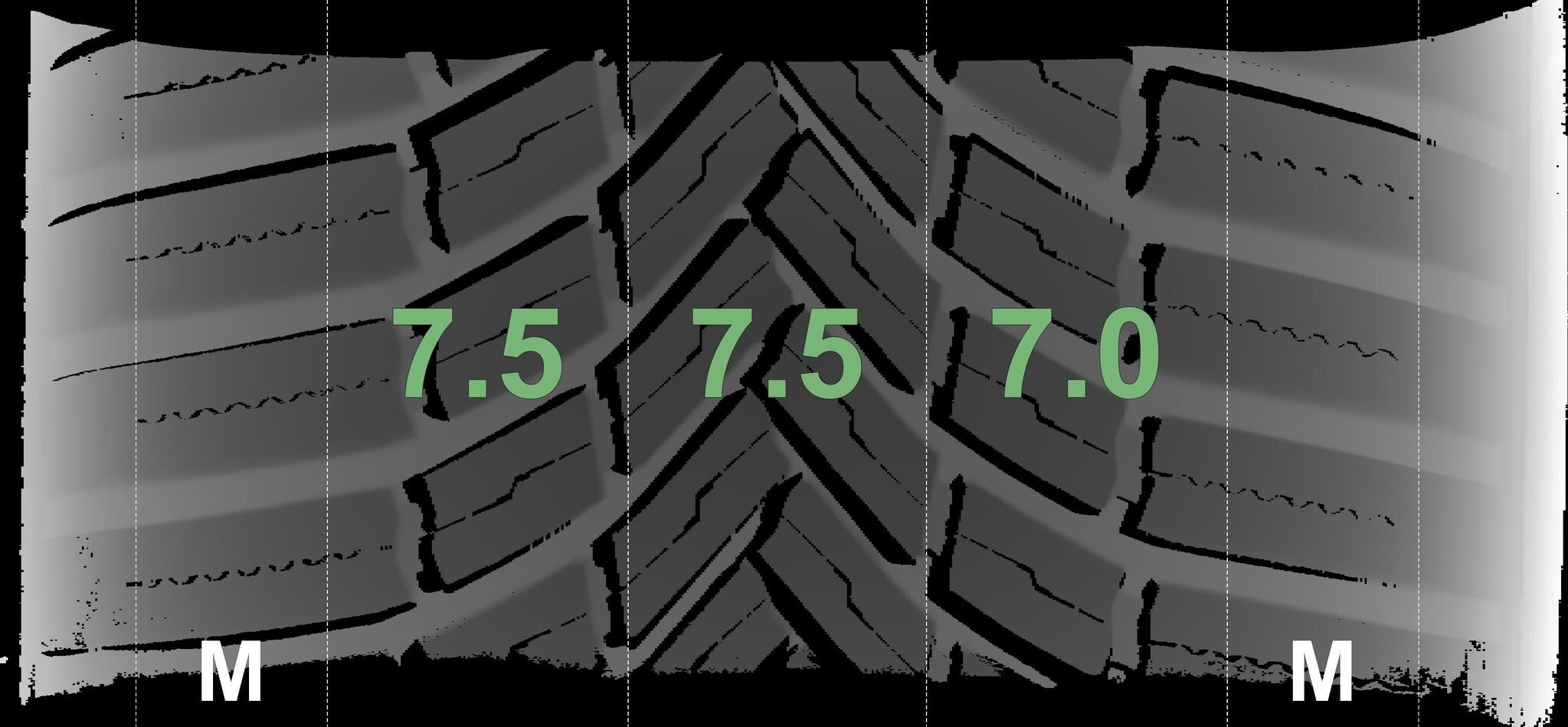 De gemeten profieldieptes en de details van de velgen zijn hierboven weergegeven.