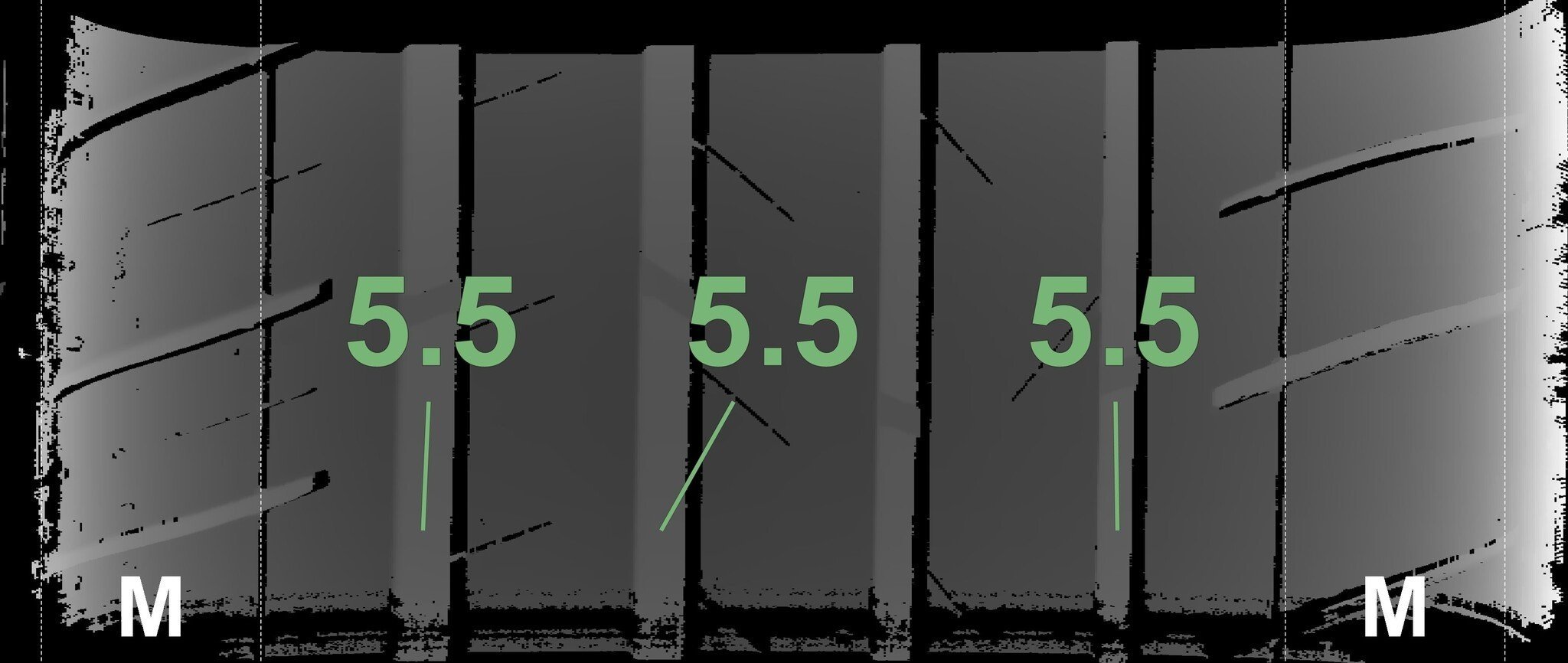 | Conditie | Profieldiepte | DOT | Rechts Voor | Gebruikt | 5.5 mm | 0925 |