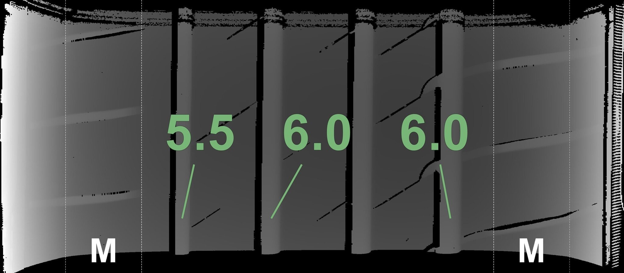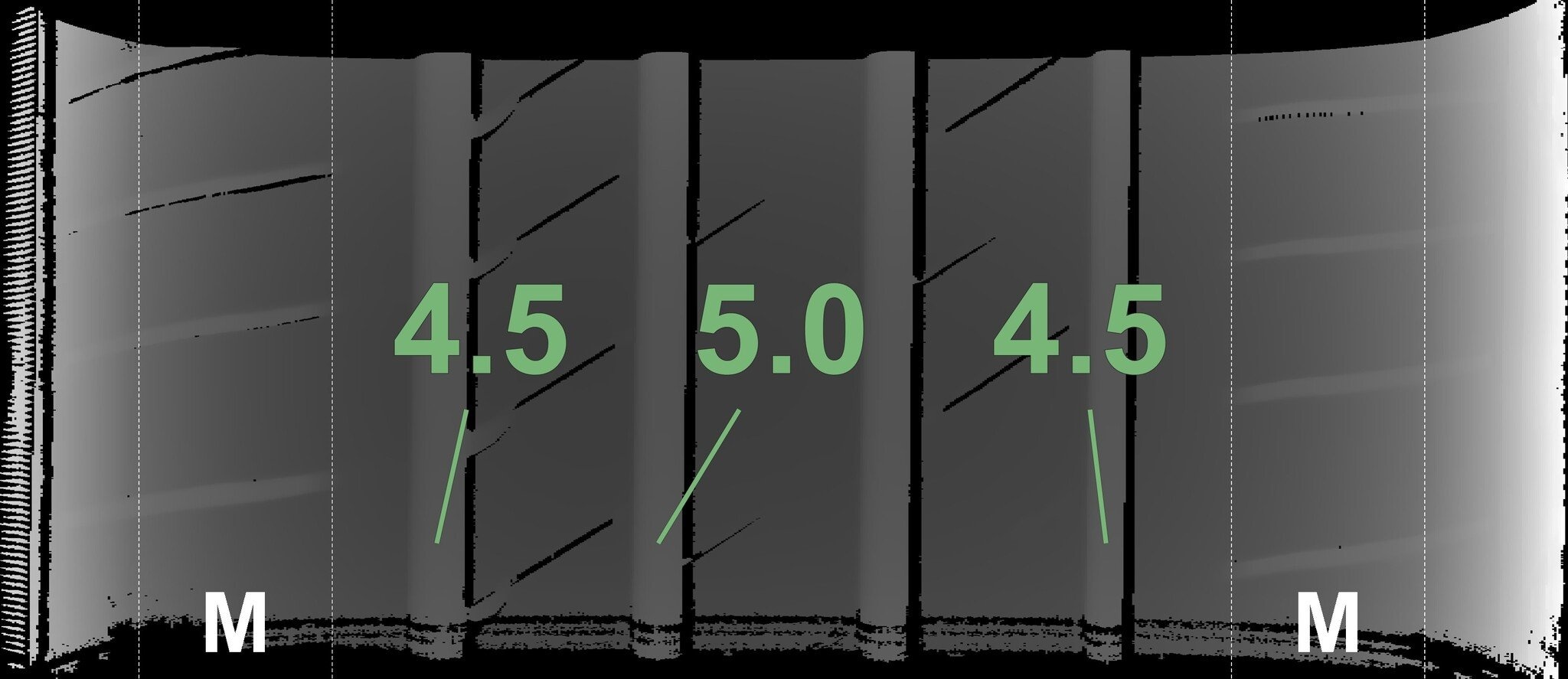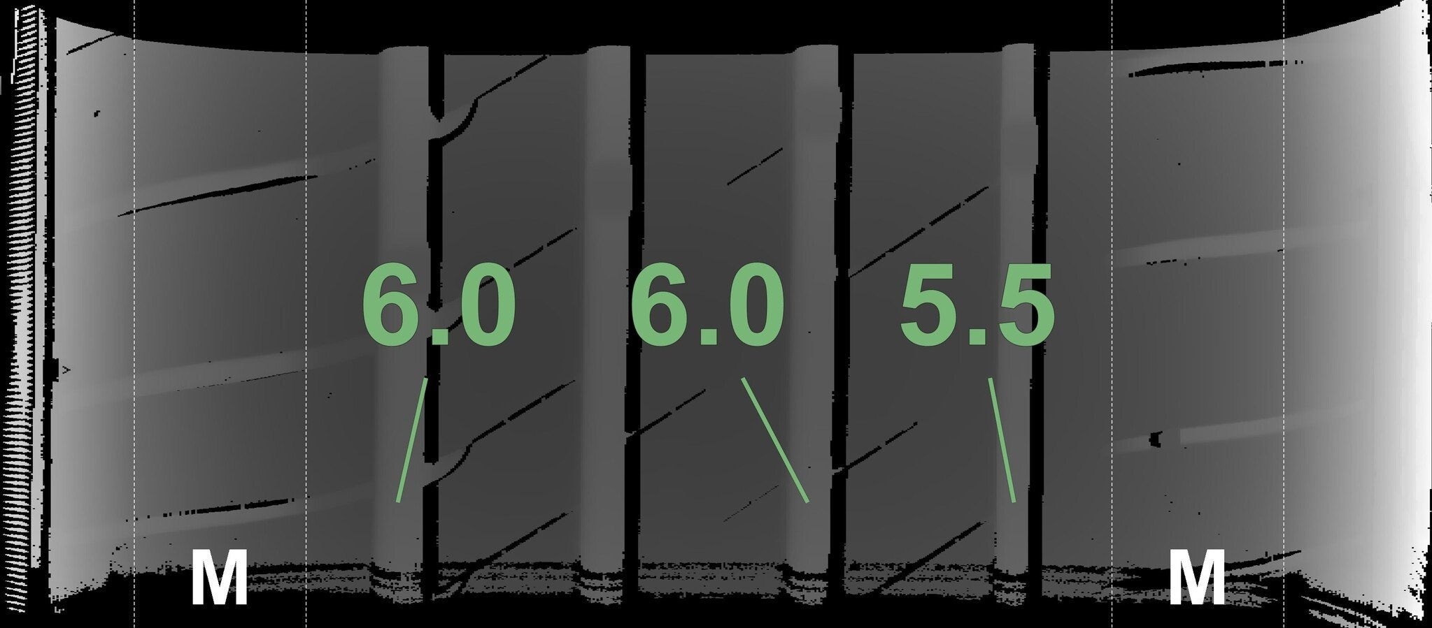 De gemeten profieldieptes en de details van de velgen zijn hierboven weergegeven.
