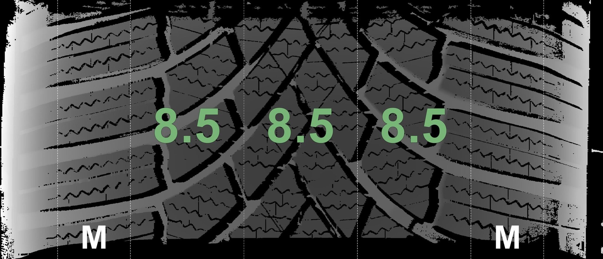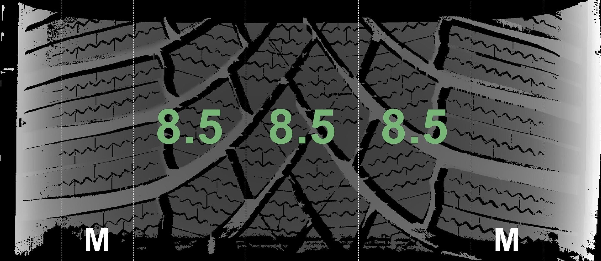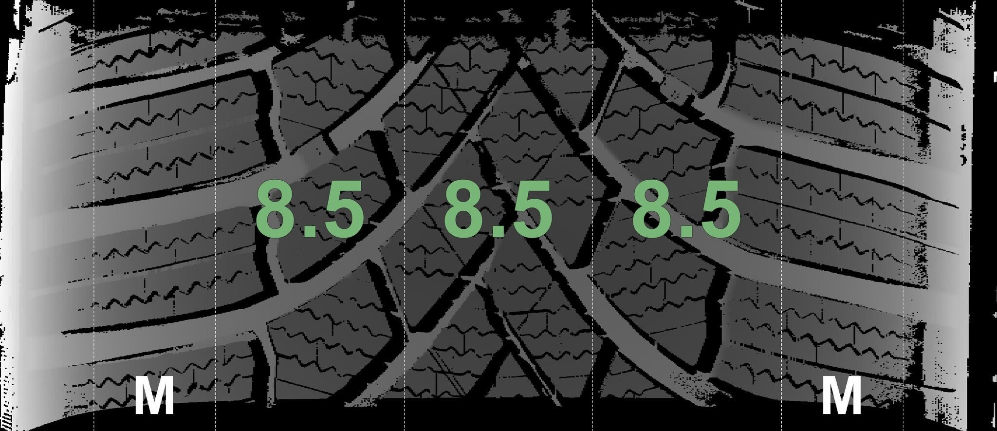 De gemeten profieldieptes en de details van de velgen zijn hierboven weergegeven.