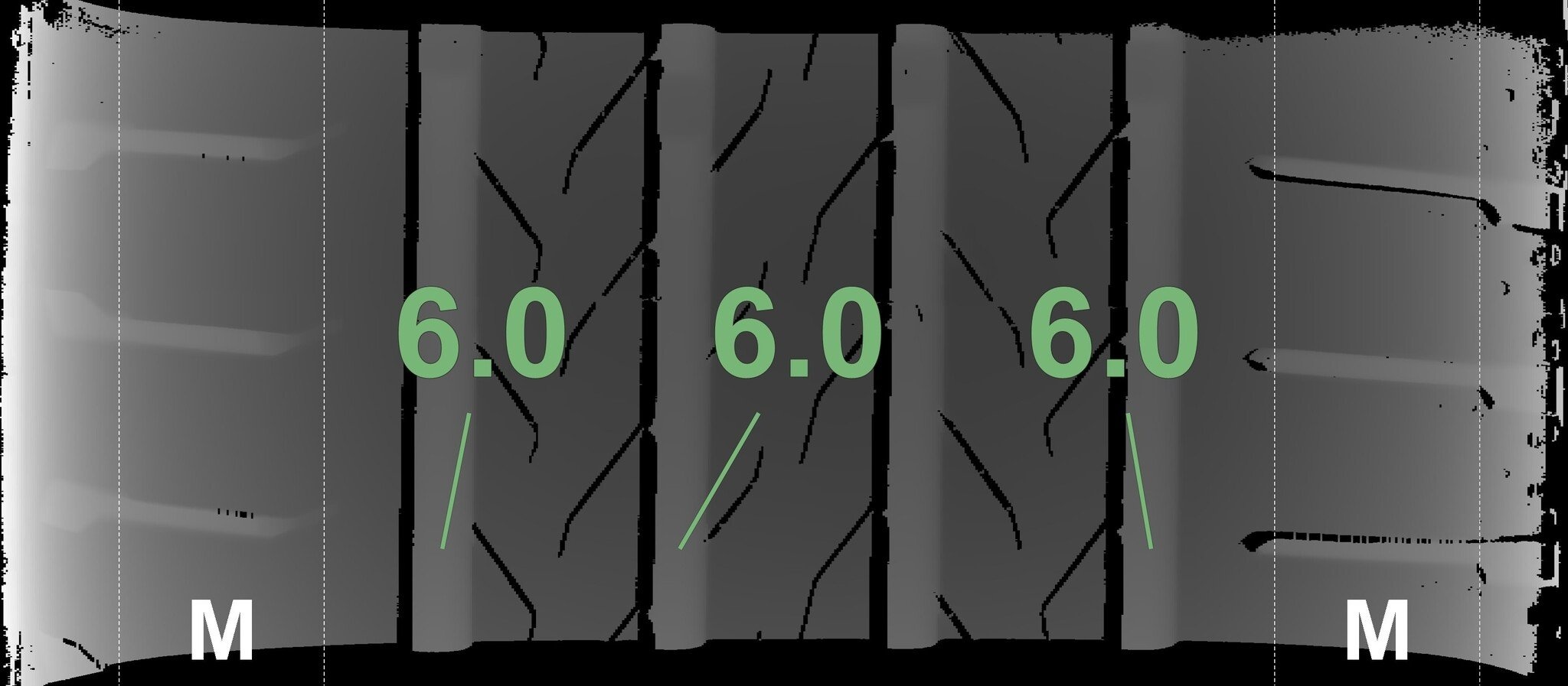 | Conditie | Profieldiepte | DOT | Rechts Achter | Demo nopjes nog zichtbaar | 6.0 mm | 2824 |