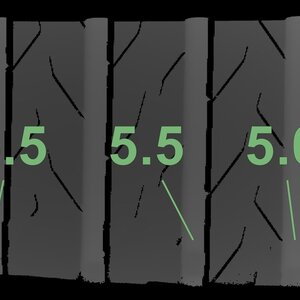 De gemeten profieldieptes en de details van de velgen zijn hierboven weergegeven.