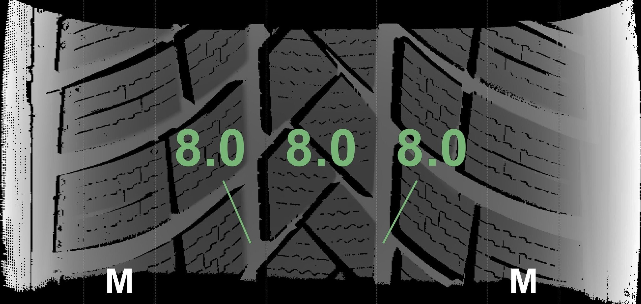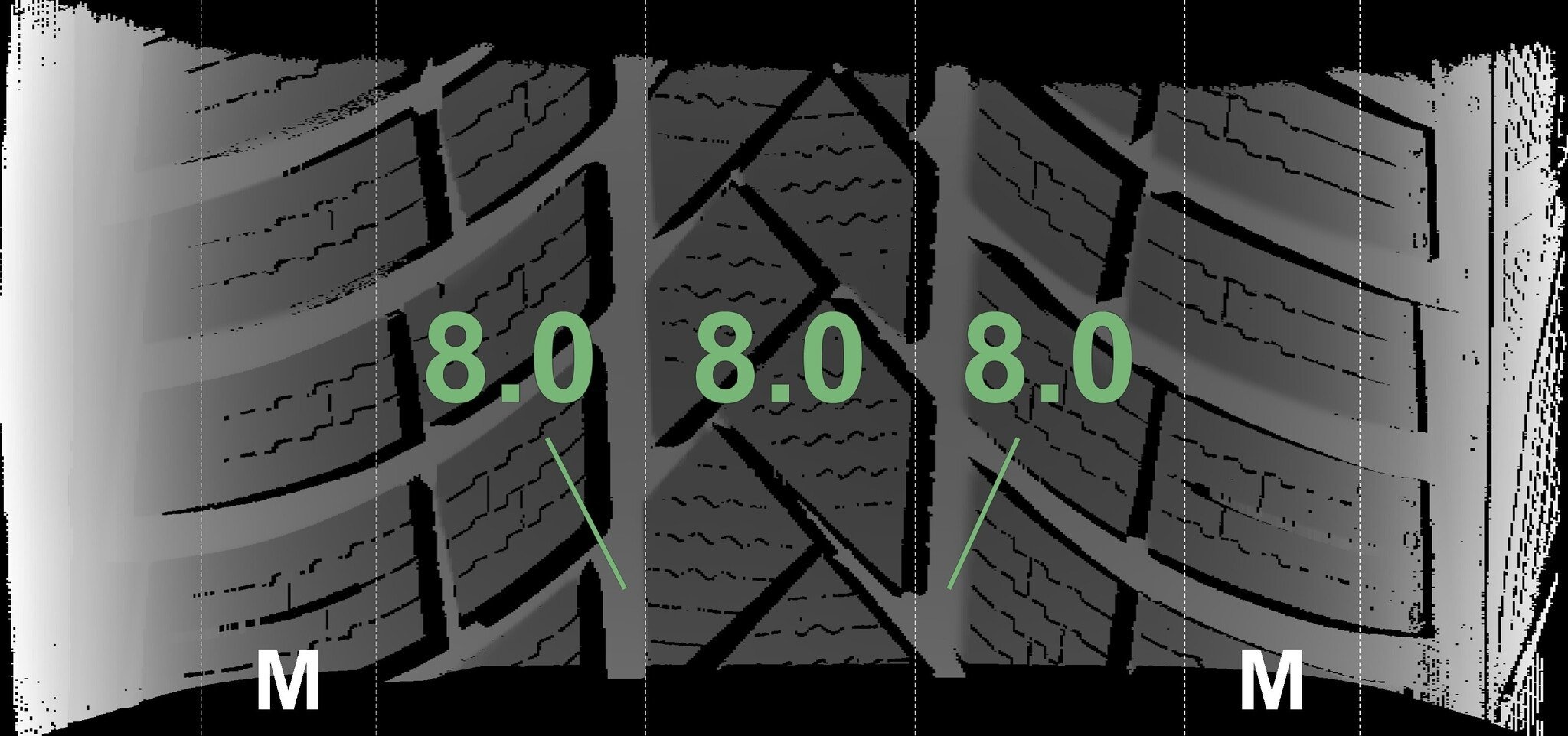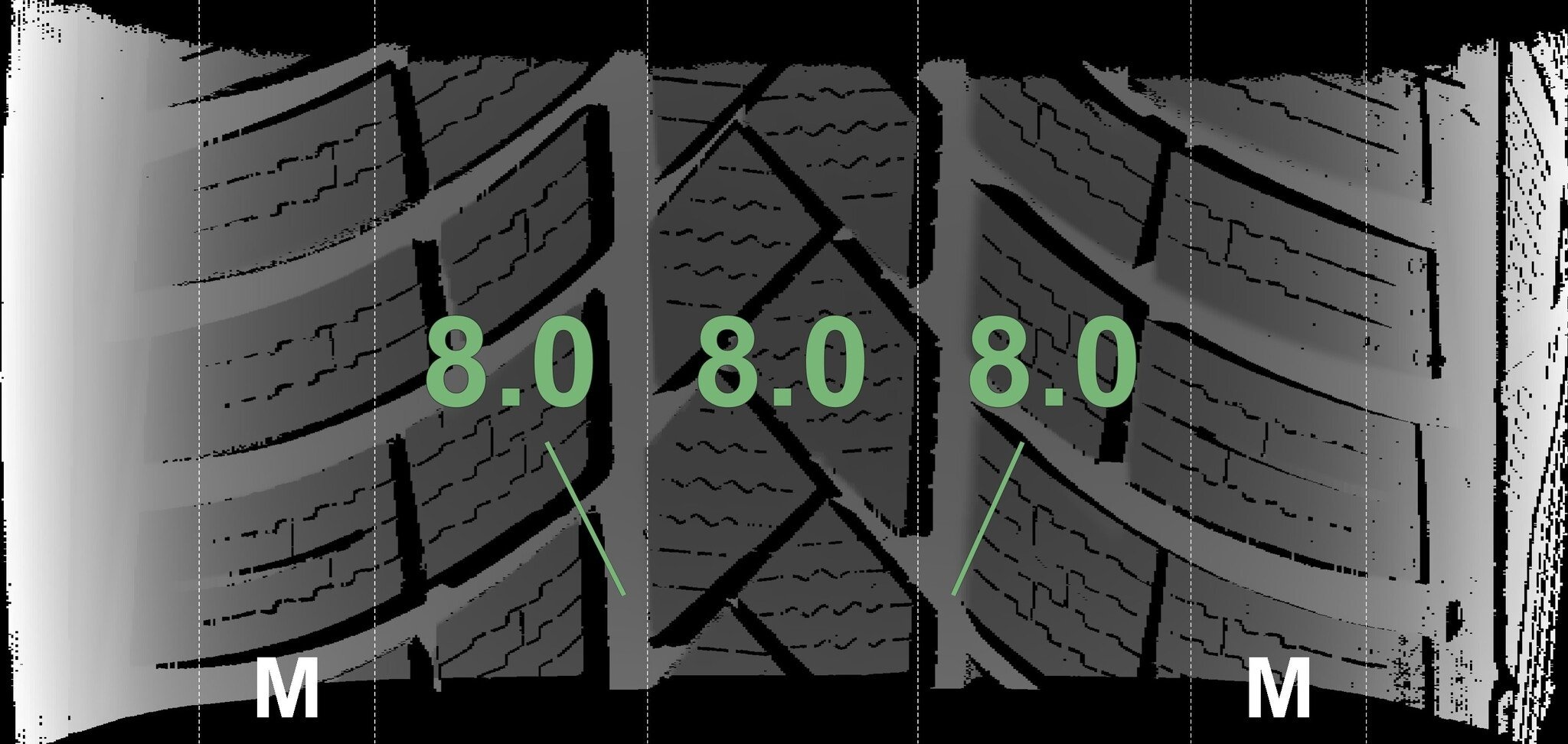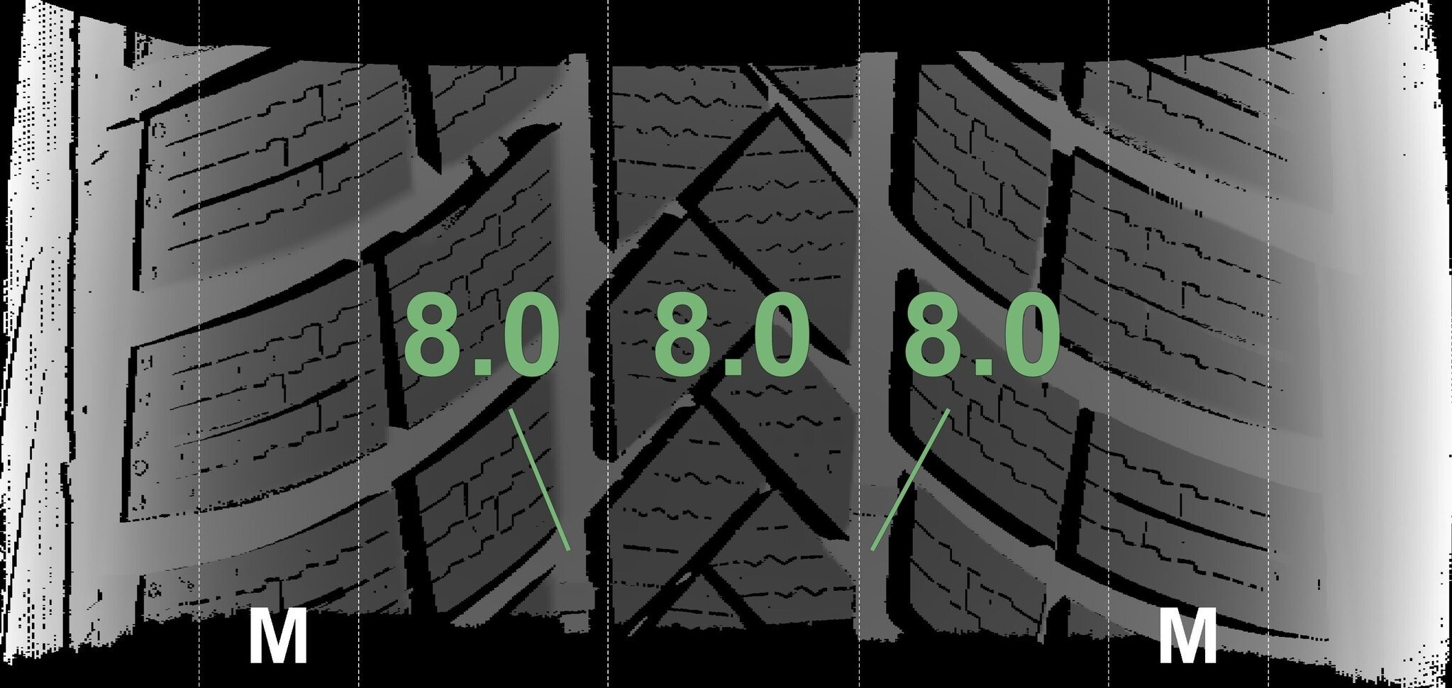 De gemeten profieldieptes en de details van de velgen zijn hierboven weergegeven.