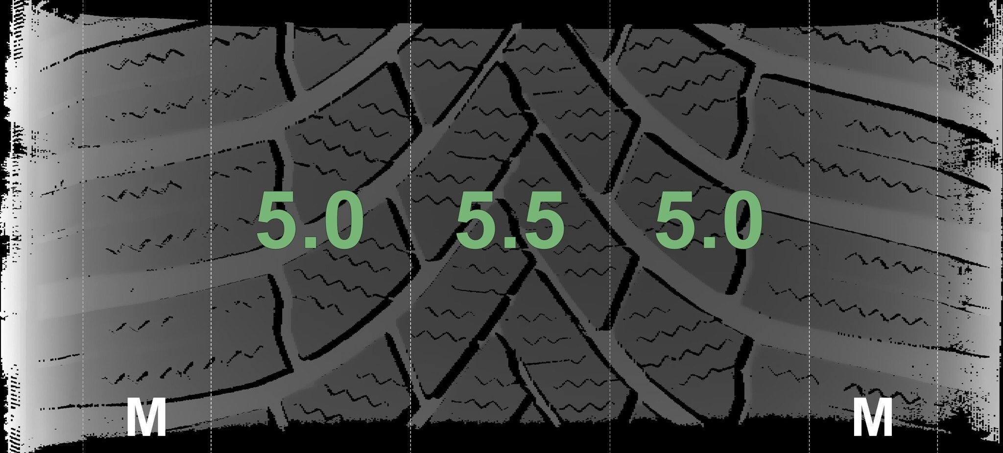 De gemeten profieldieptes en de details van de velgen zijn hierboven weergegeven.