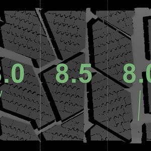 De gemeten profieldieptes en de details van de velgen zijn hierboven weergegeven.