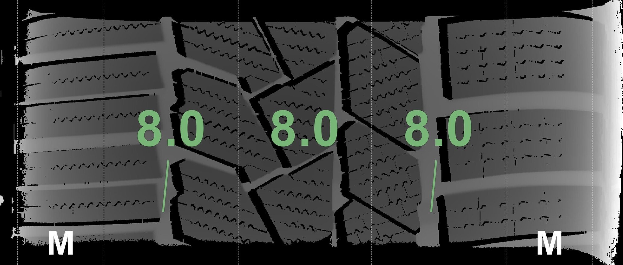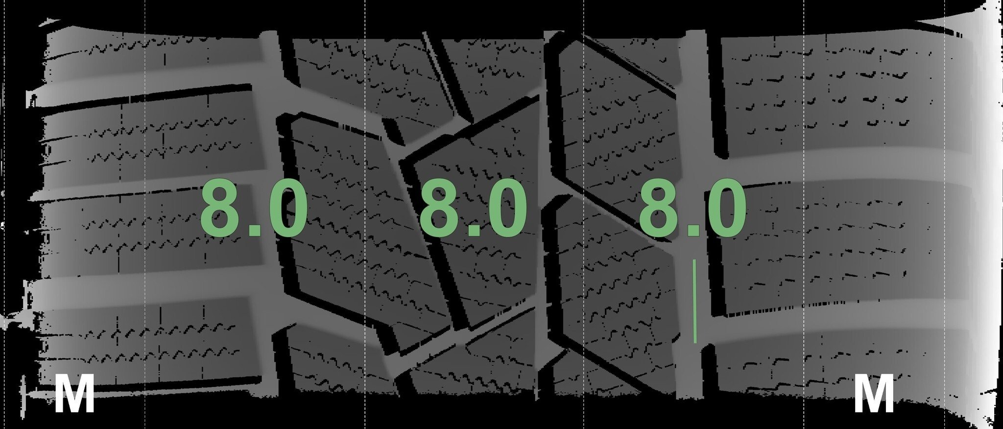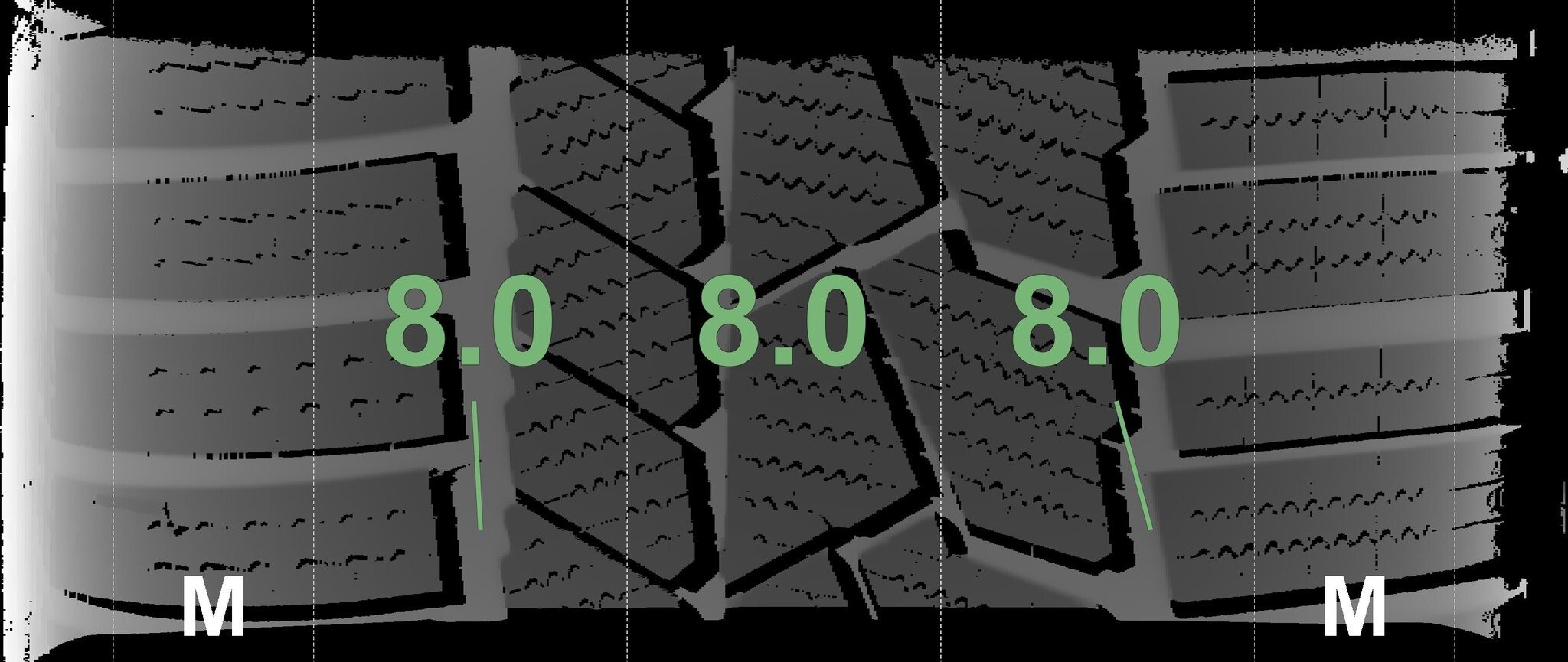 | Conditie | Profieldiepte | DOT | Rechts Achter | Demo nopjes nog zichtbaar | 8.0 mm | 3423 |