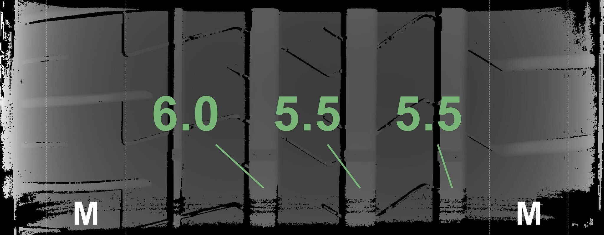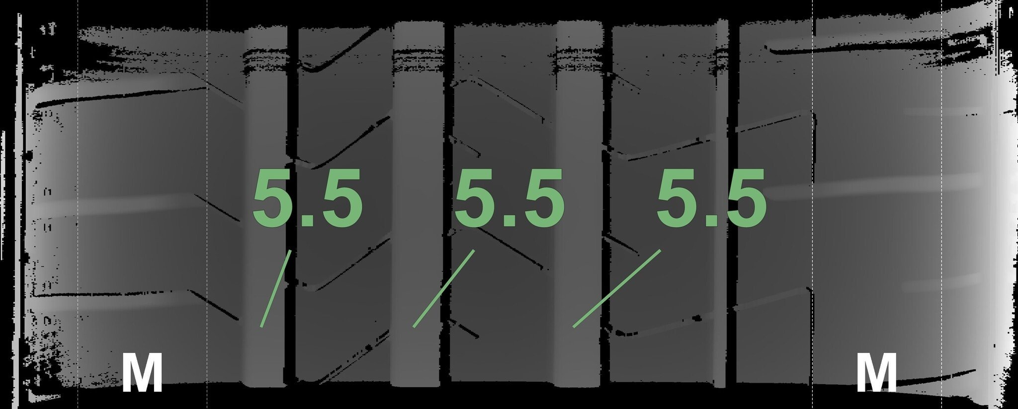 Conditie | Profieldiepte | DOT | Links Achter | Demo nopjes nog zichtbaar | 5.5 mm | 1924 |