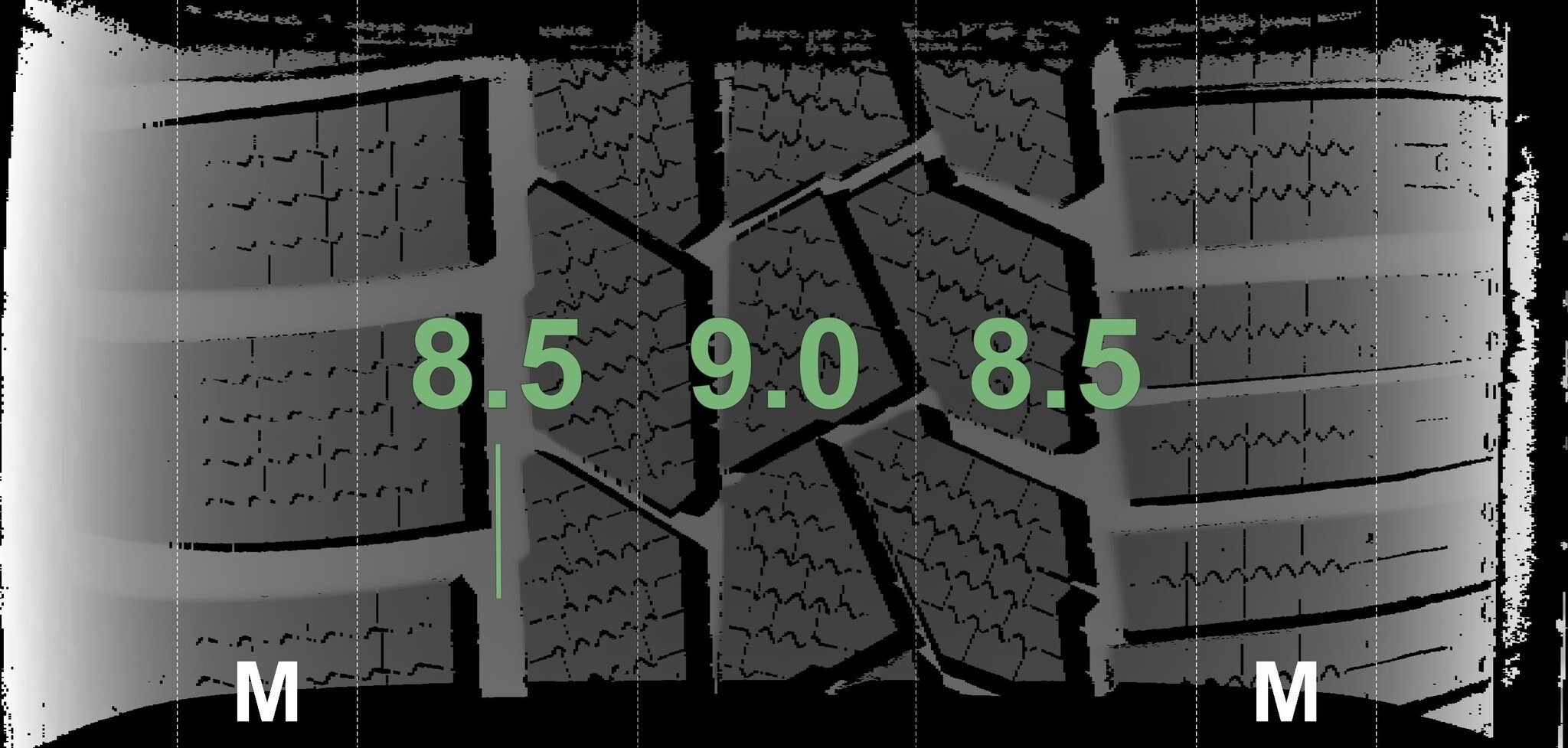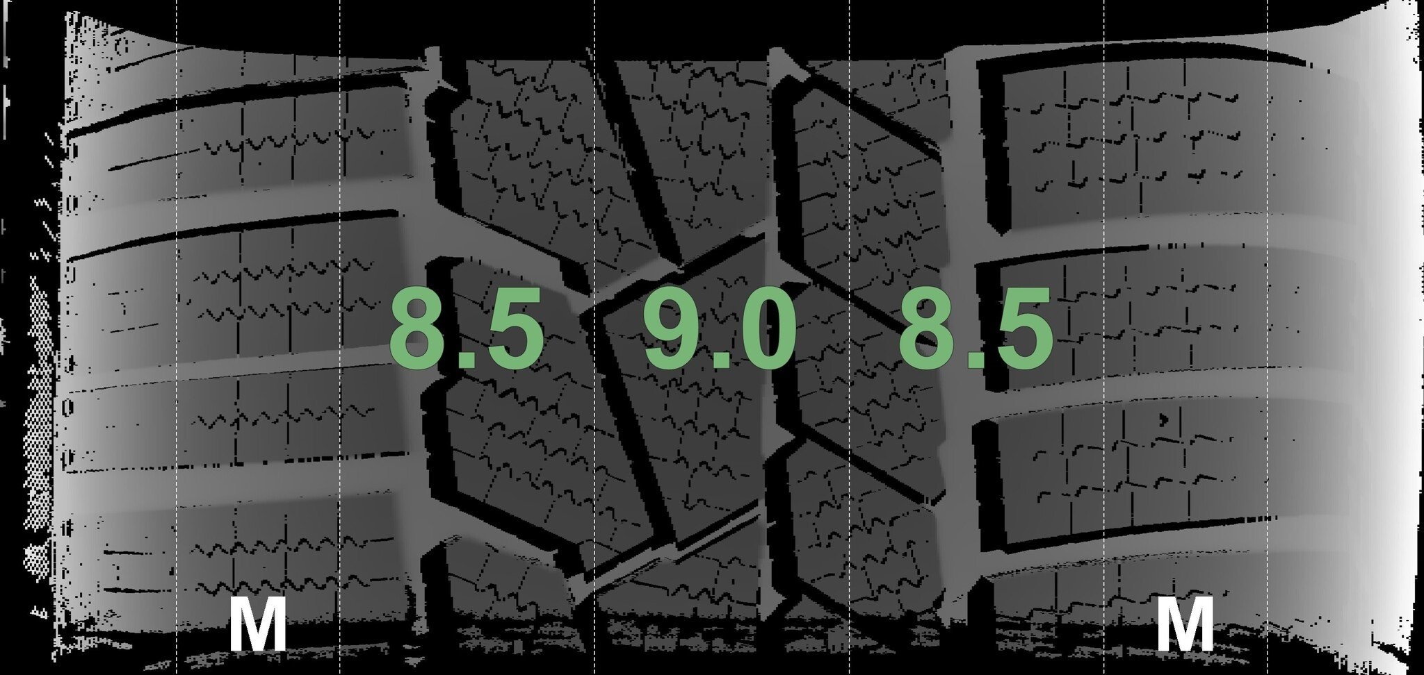 De gemeten profieldieptes en de details van de velgen zijn hierboven weergegeven.
