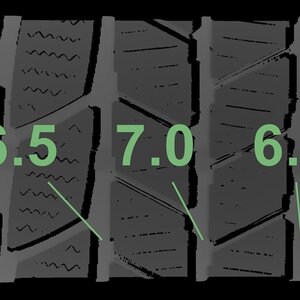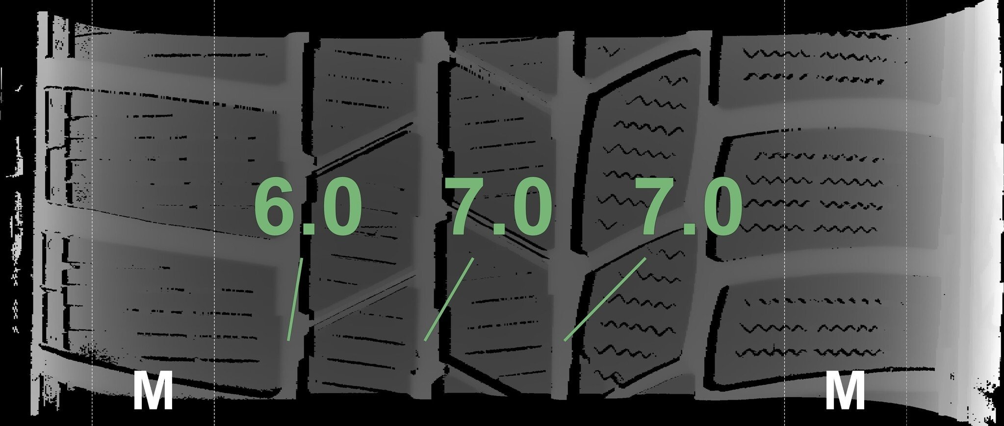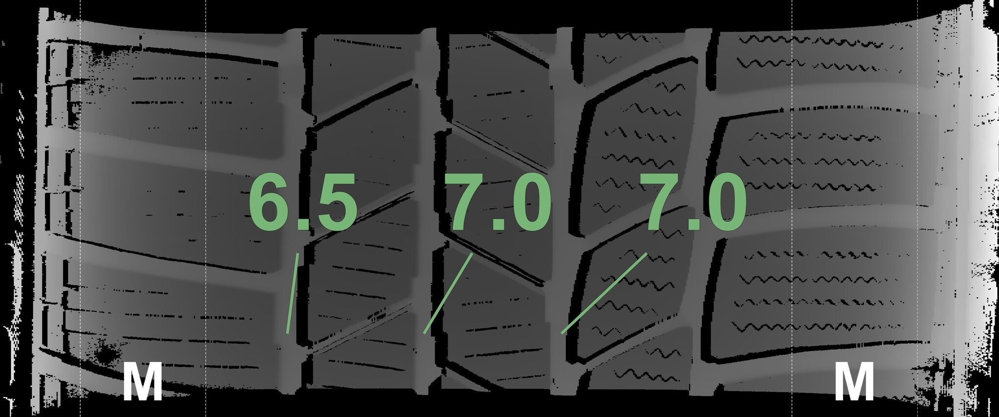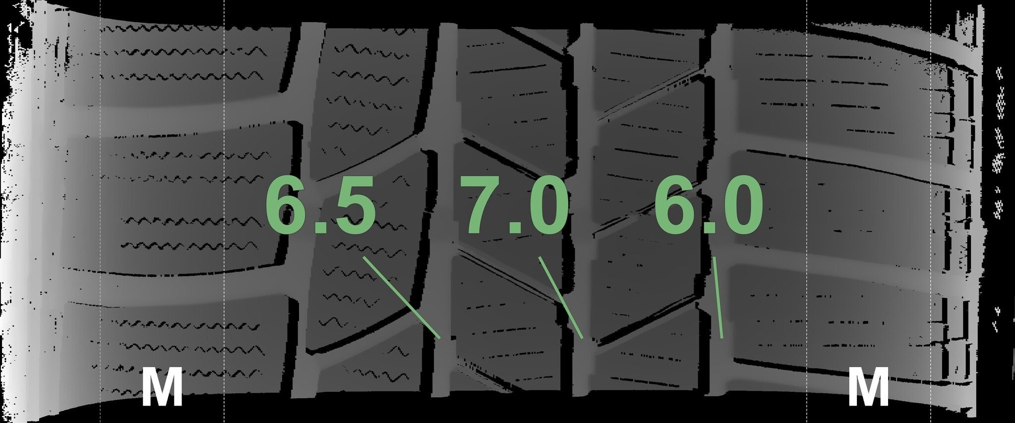 De gemeten profieldieptes en de details van de velgen zijn hierboven weergegeven.