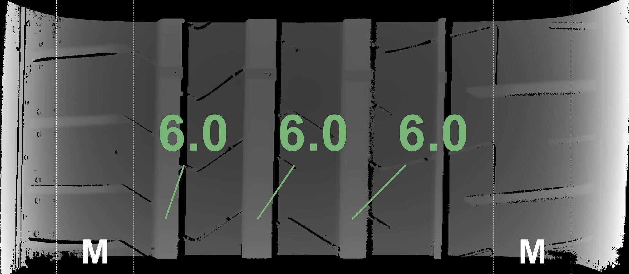 De gemeten profieldieptes en de details van de velgen zijn hierboven weergegeven.