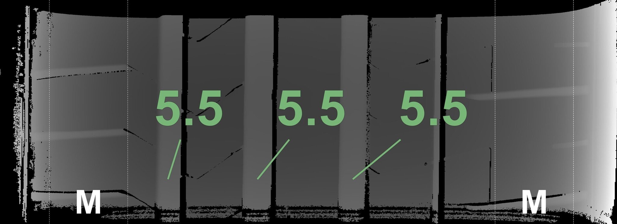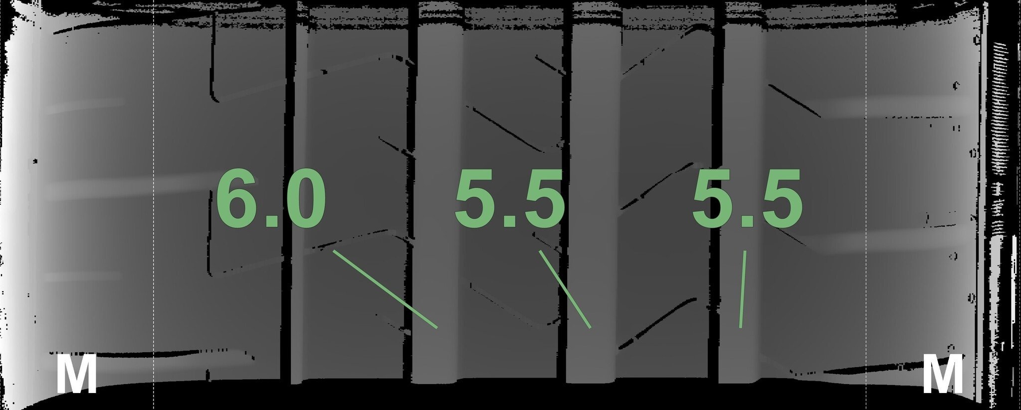 De gemeten profieldieptes en de details van de velgen zijn hierboven weergegeven.