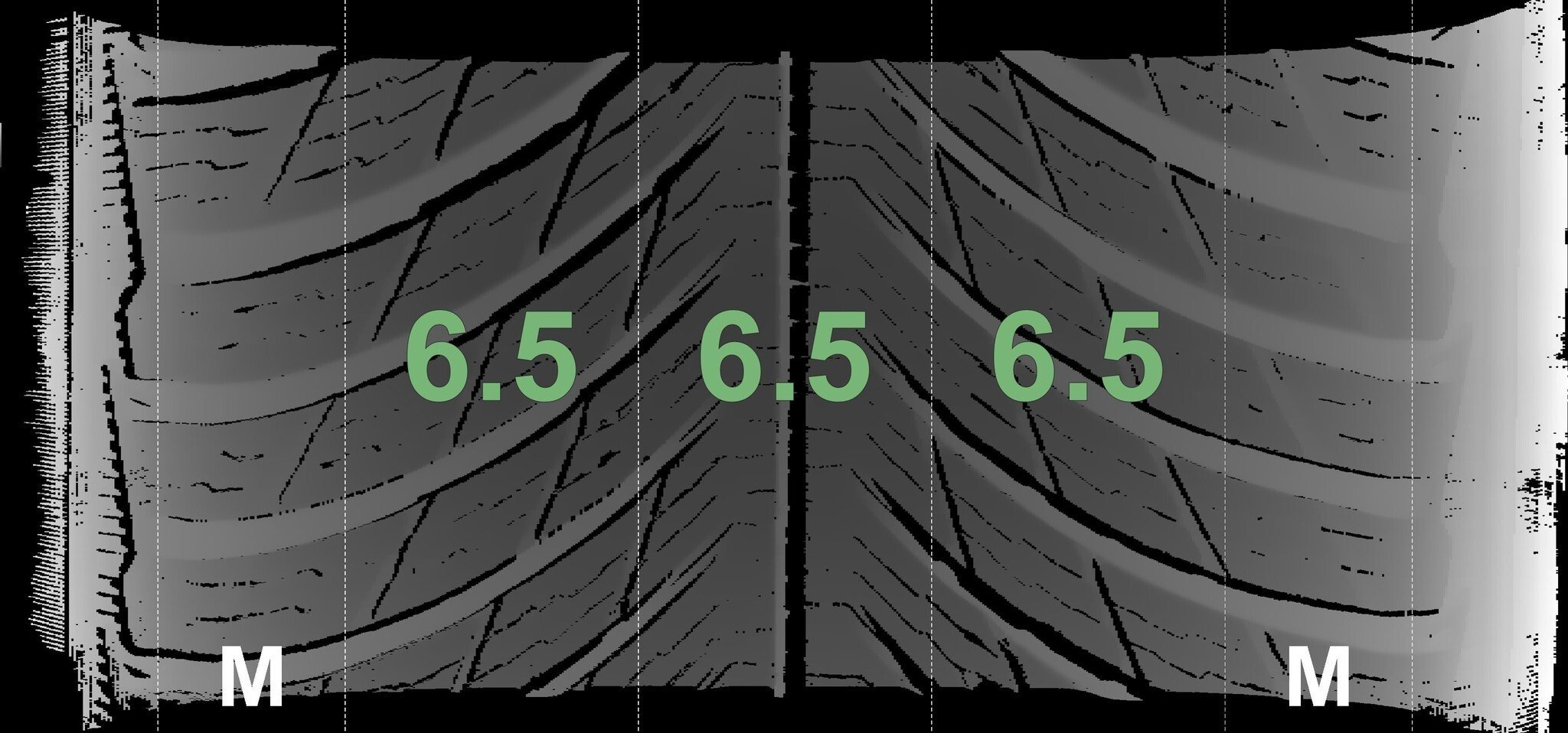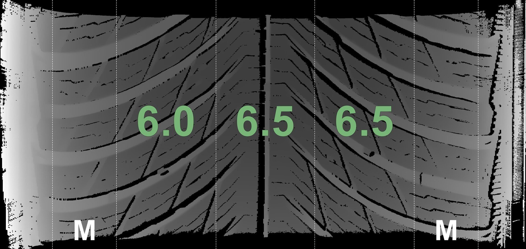 De gemeten profieldieptes en de details van de velgen zijn hierboven weergegeven.