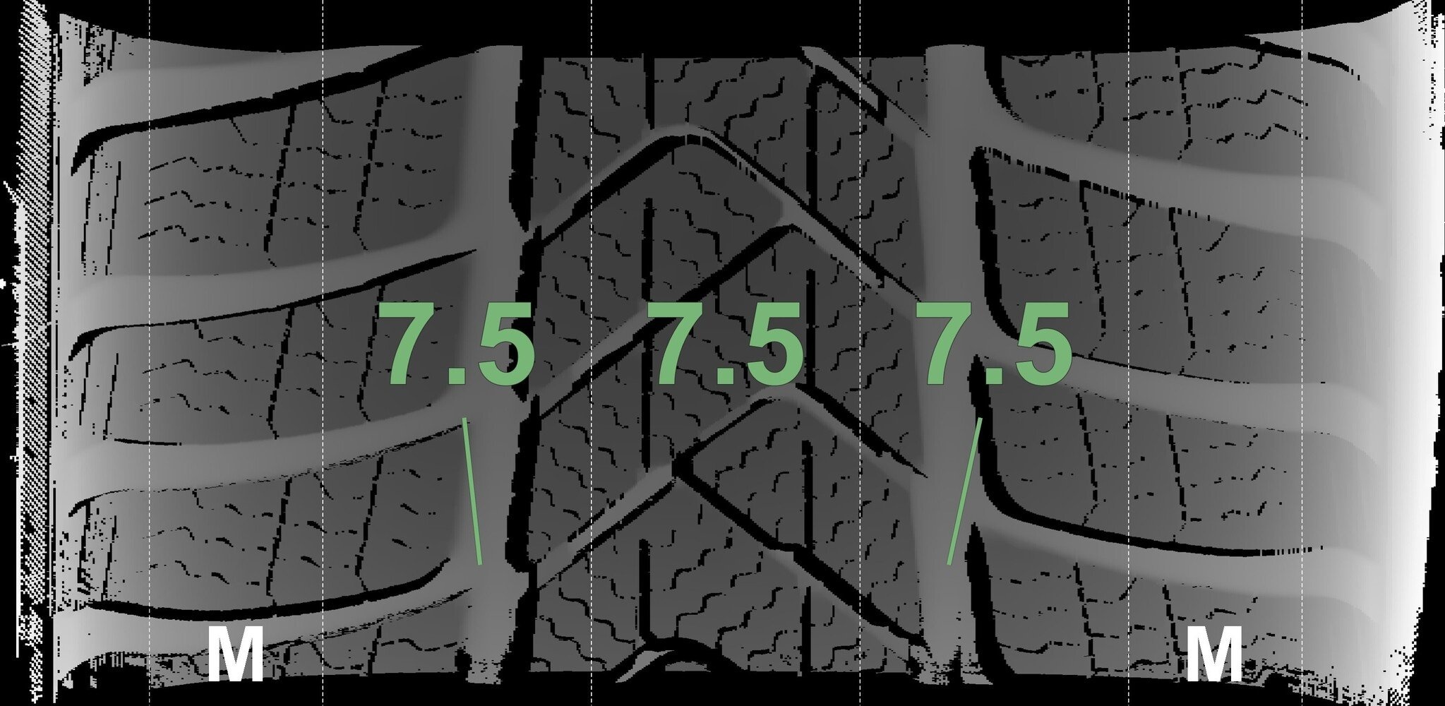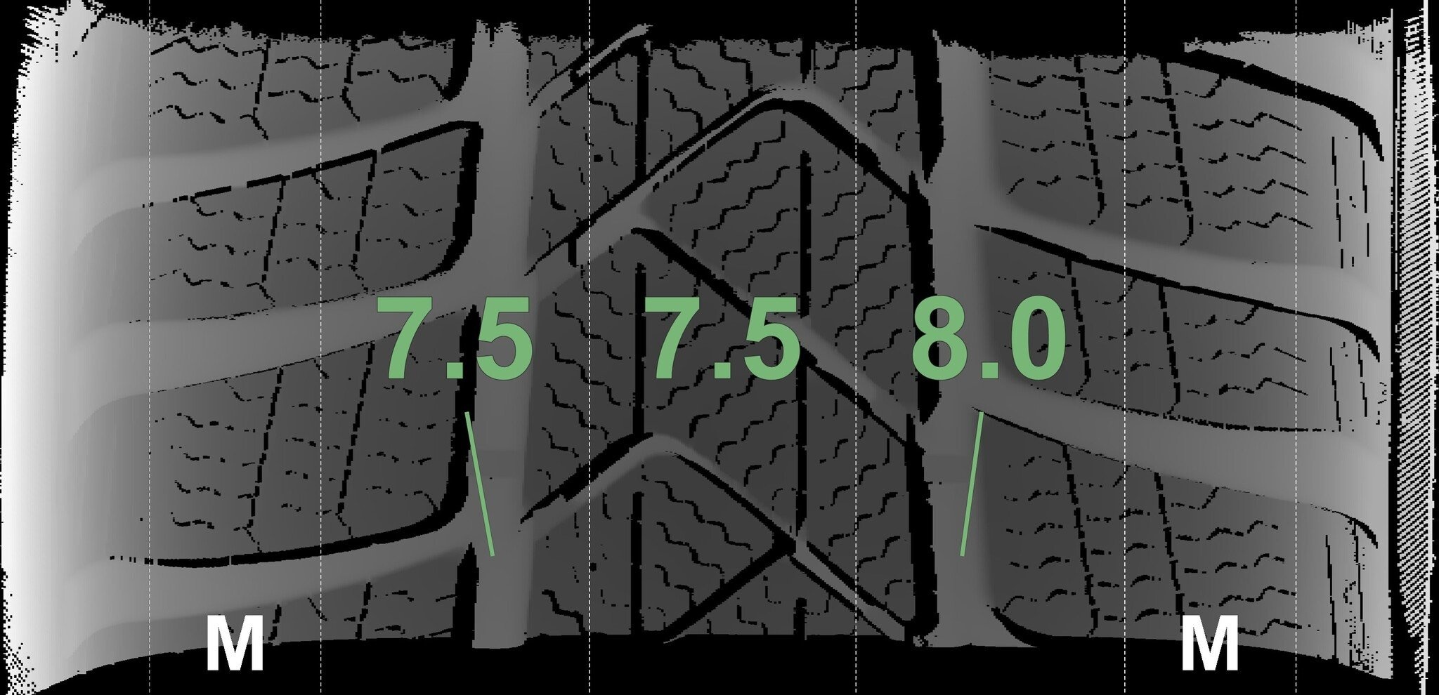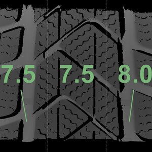 De gemeten profieldieptes en de details van de velgen zijn hierboven weergegeven.