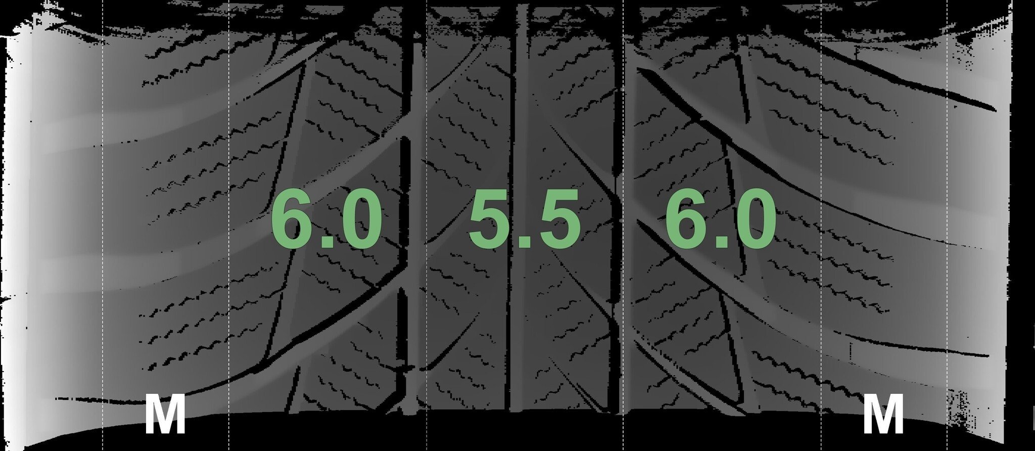 De gemeten profieldieptes en de details van de velgen zijn hierboven weergegeven.