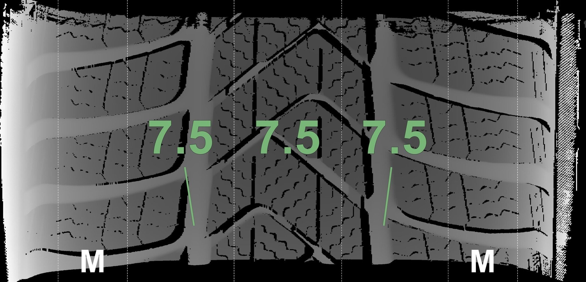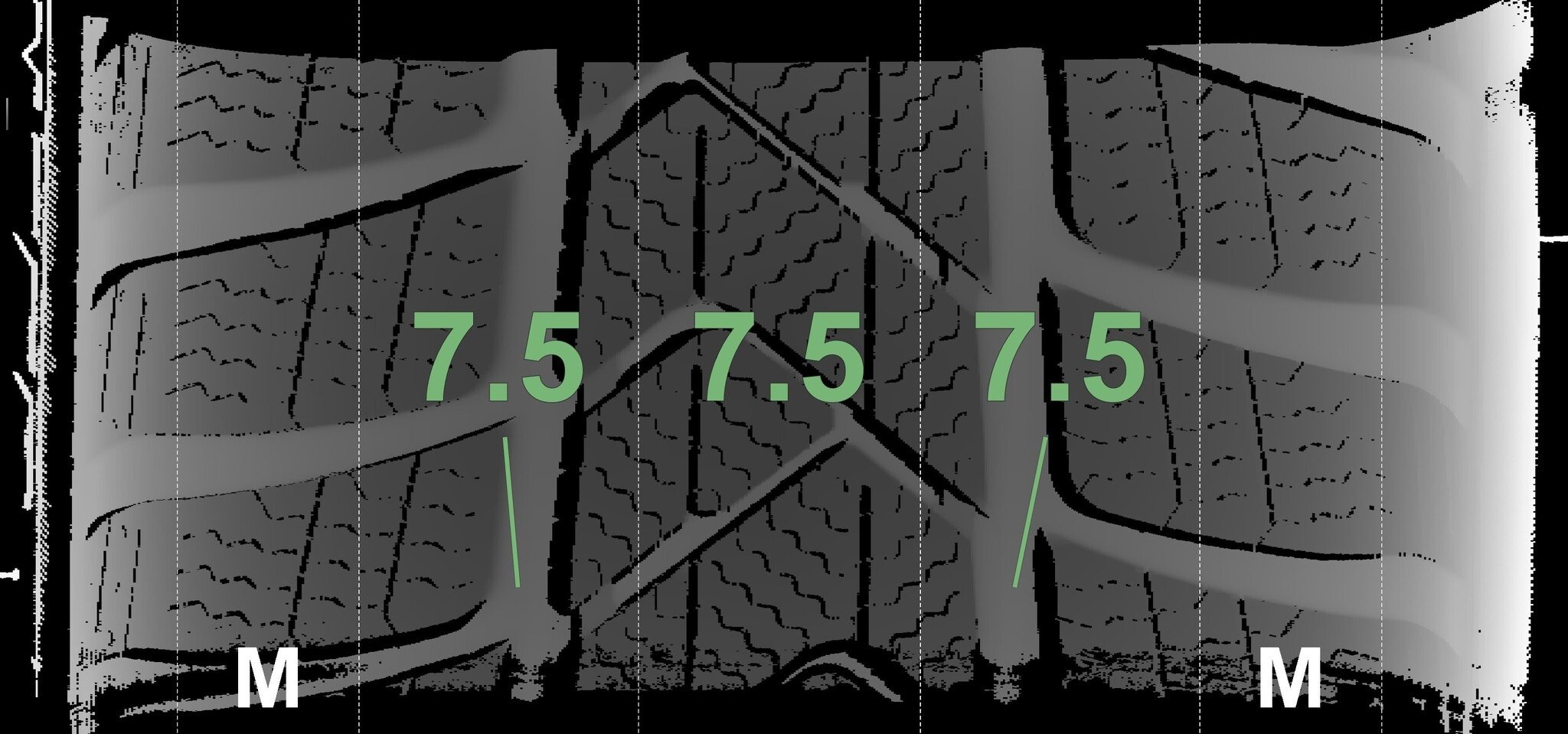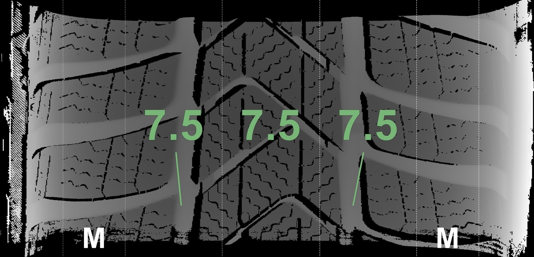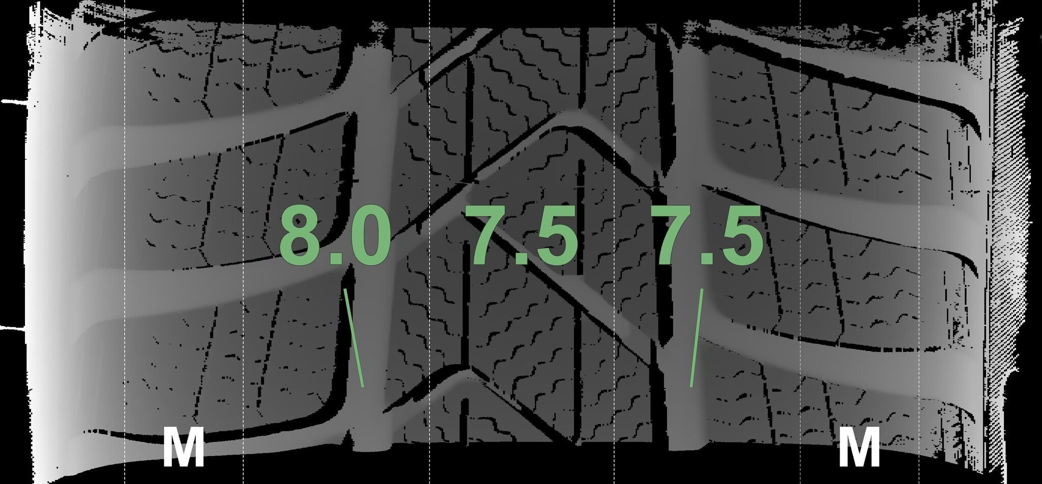 De gemeten profieldieptes en de details van de velgen zijn hierboven weergegeven.