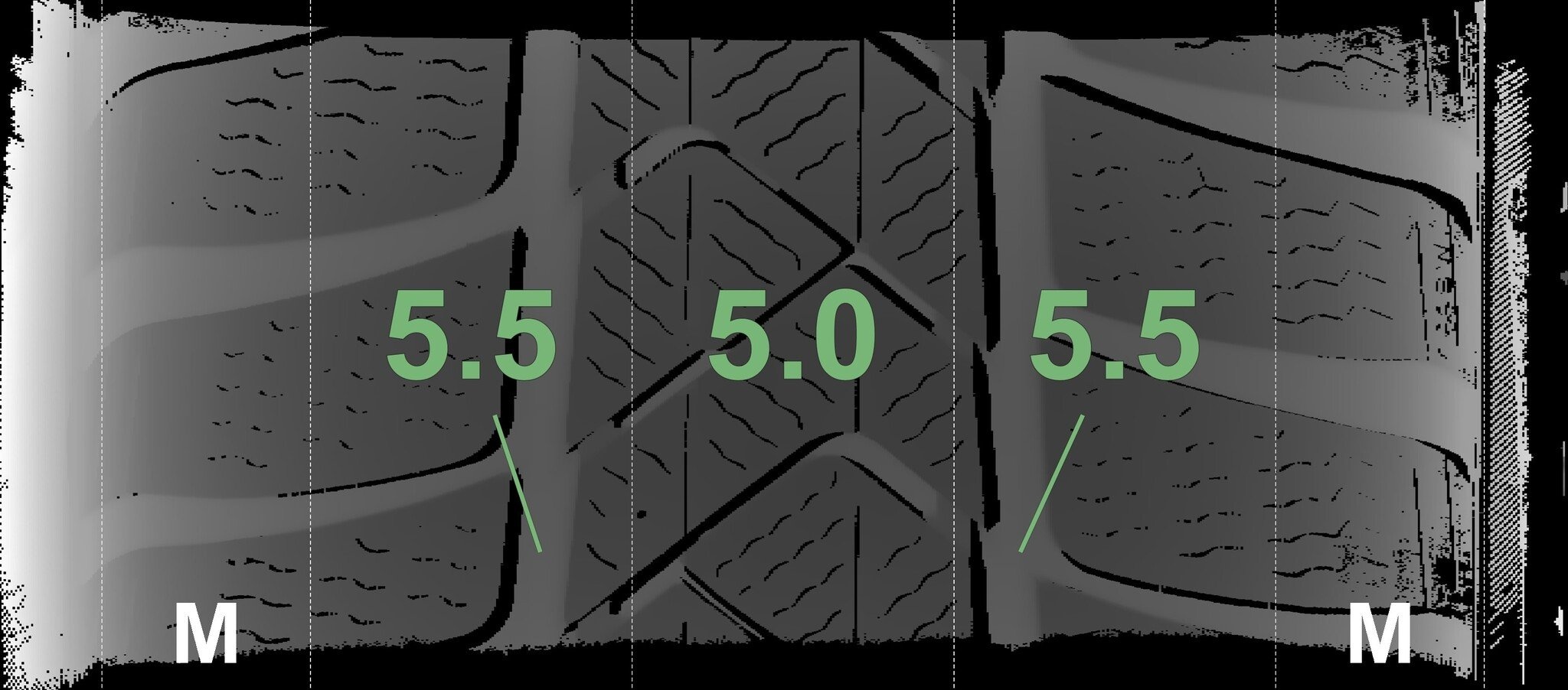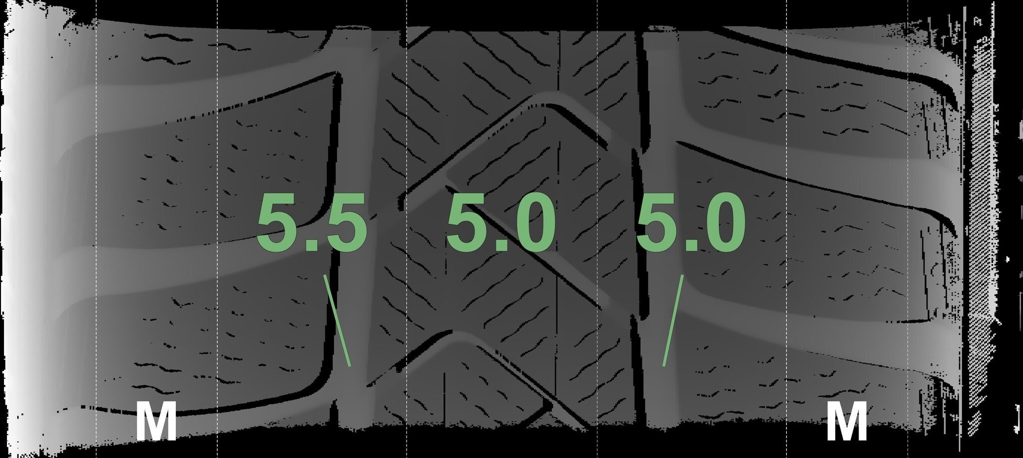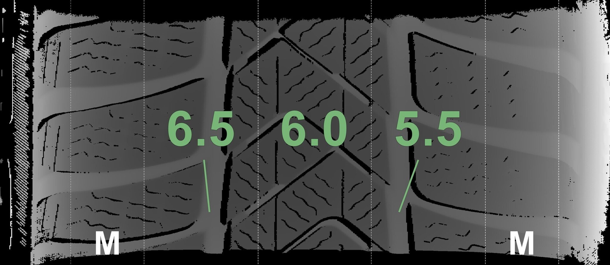 De gemeten profieldieptes en de details van de velgen zijn hierboven weergegeven.