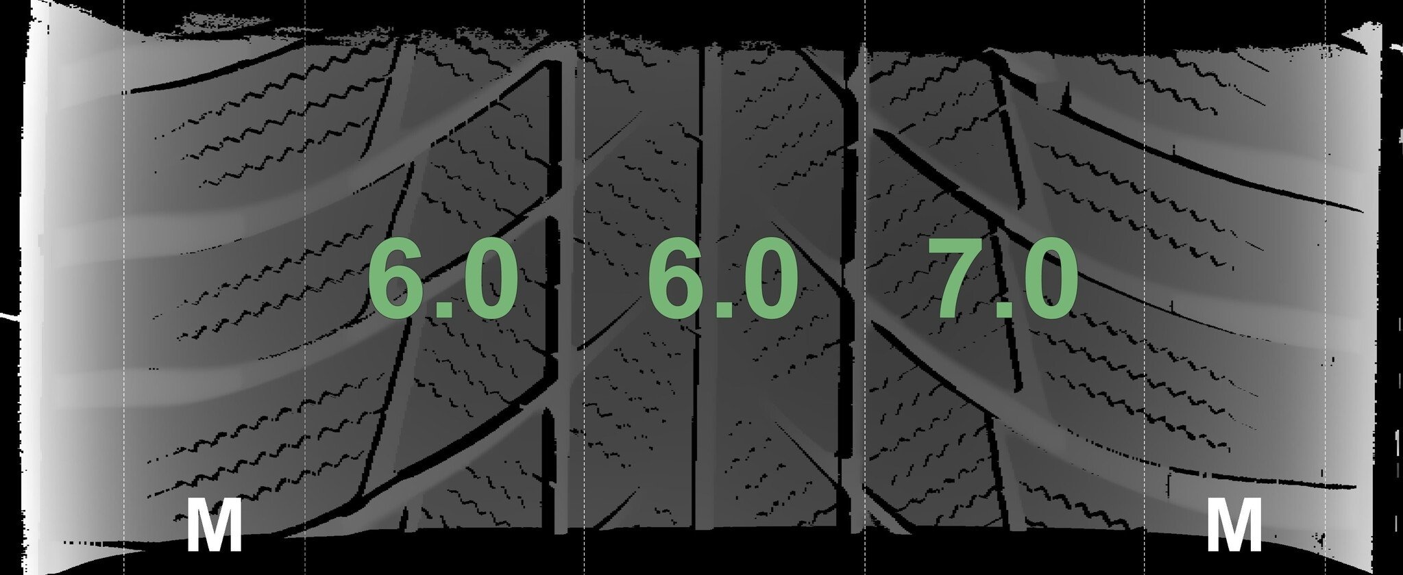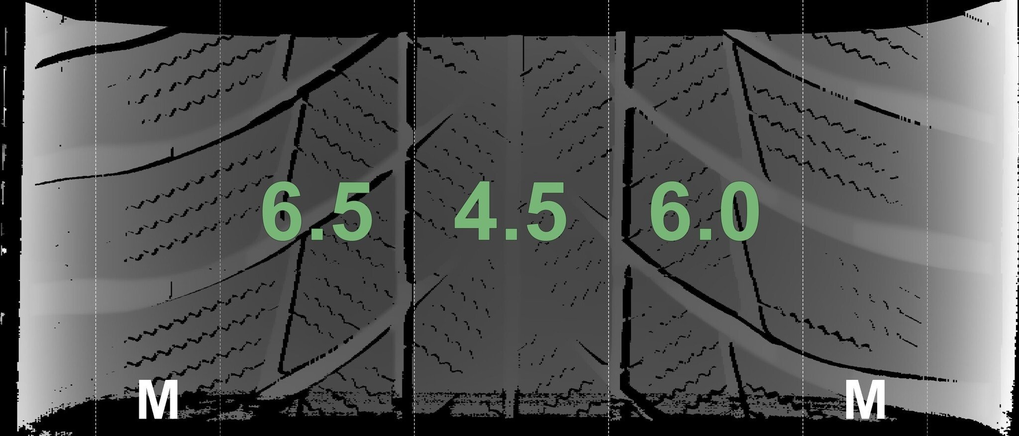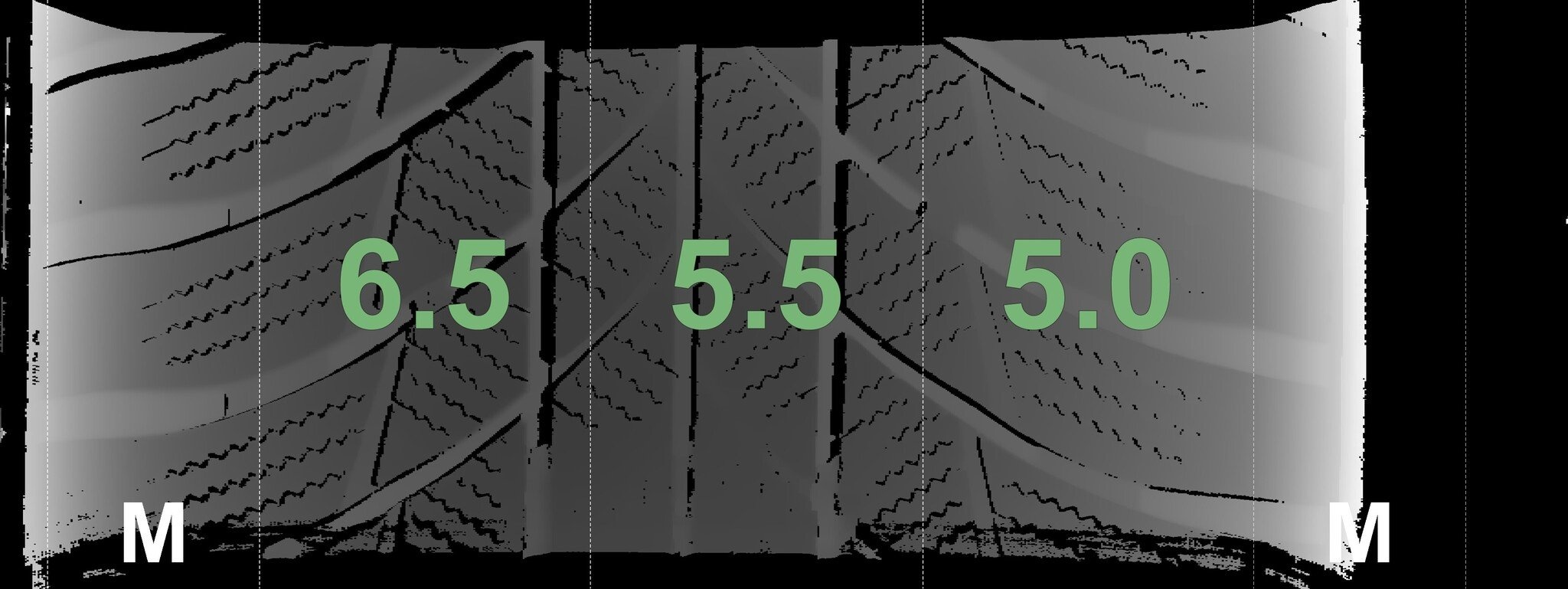 De gemeten profieldieptes en de details van de velgen zijn hierboven weergegeven.