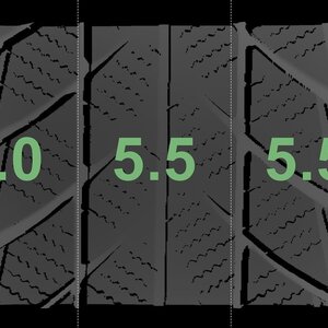 De gemeten profieldieptes en de details van de velgen zijn hierboven weergegeven.
