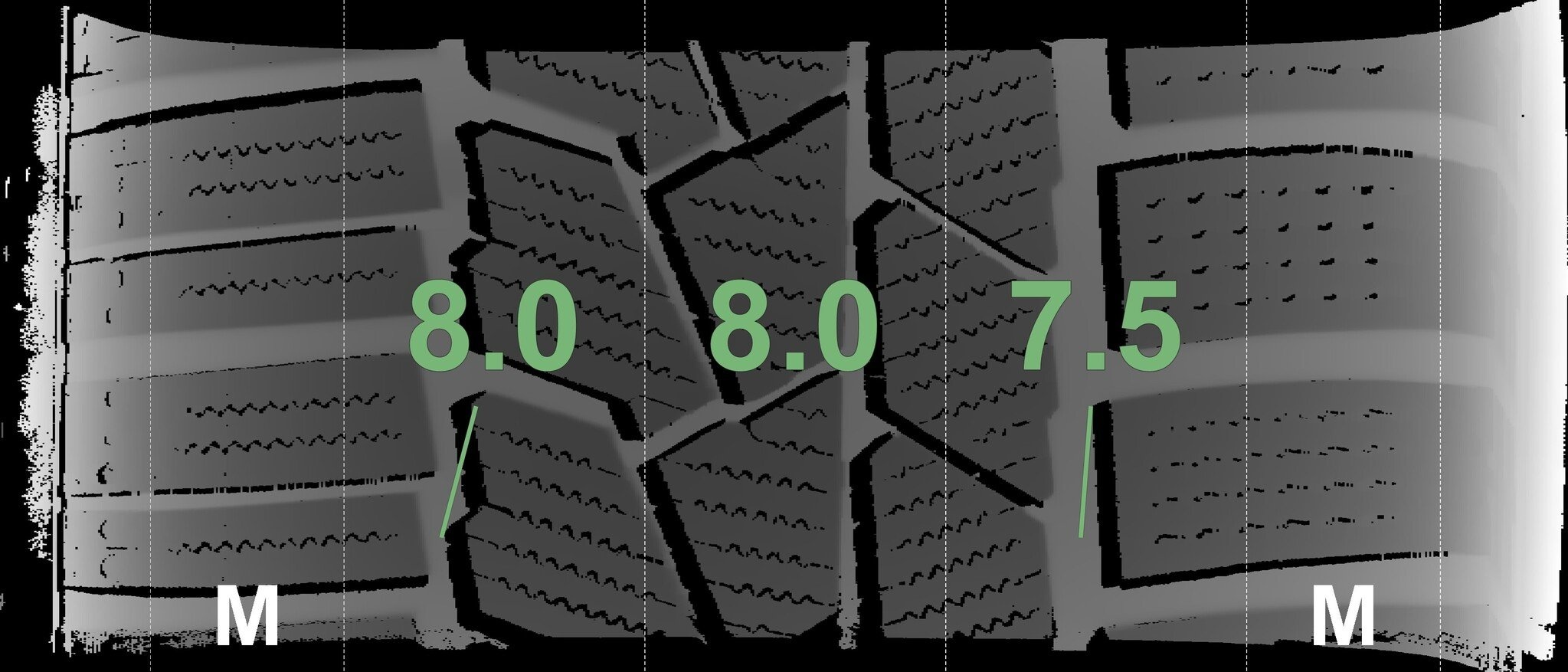 | Conditie | Profieldiepte | DOT | Links Voor | Gebruikt | 7.7 mm | 3623 |