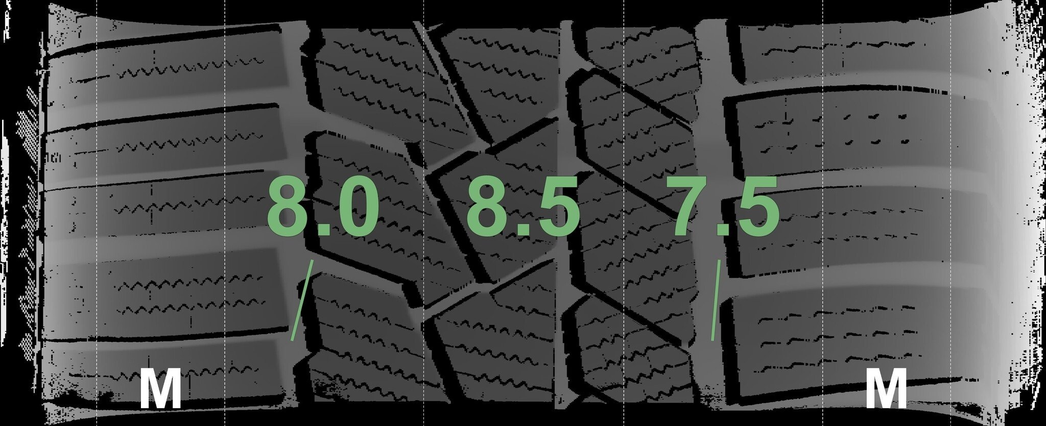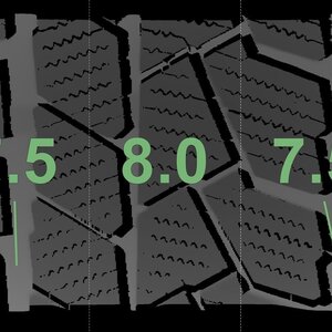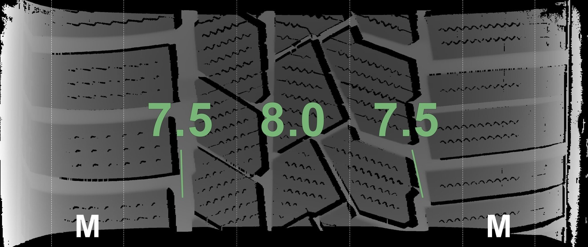 De gemeten profieldieptes en de details van de velgen zijn hierboven weergegeven.