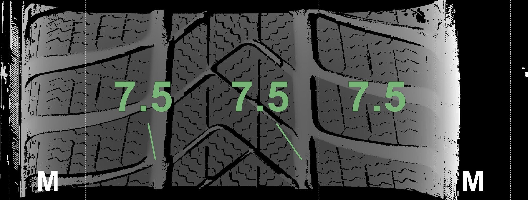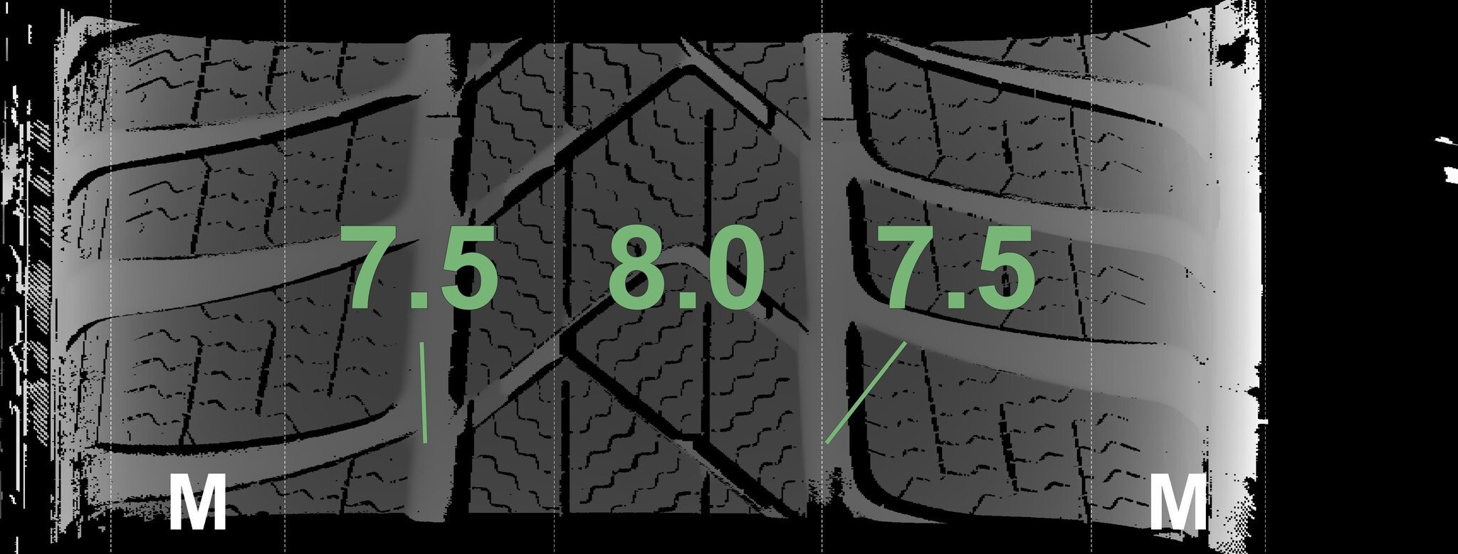 De gemeten profieldieptes en de details van de velgen zijn hierboven weergegeven.